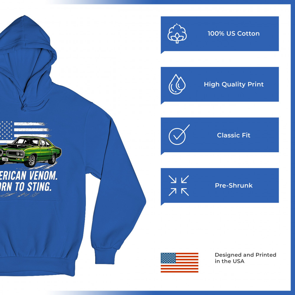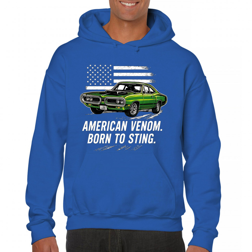Inject venom into your street style with this bold green muscle car design. With “Born to Sting†power and a backdrop of American pride, this graphic is perfect for Scat fans, gearheads, and drivers who embrace speed, dominance, and the sound of true muscle. Rule car meets, rev battles, and highway runs with unmatched attitude.