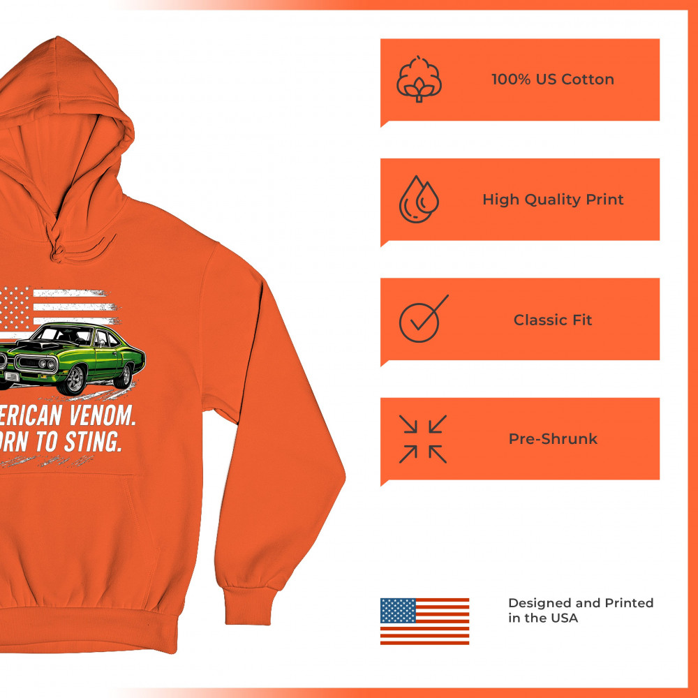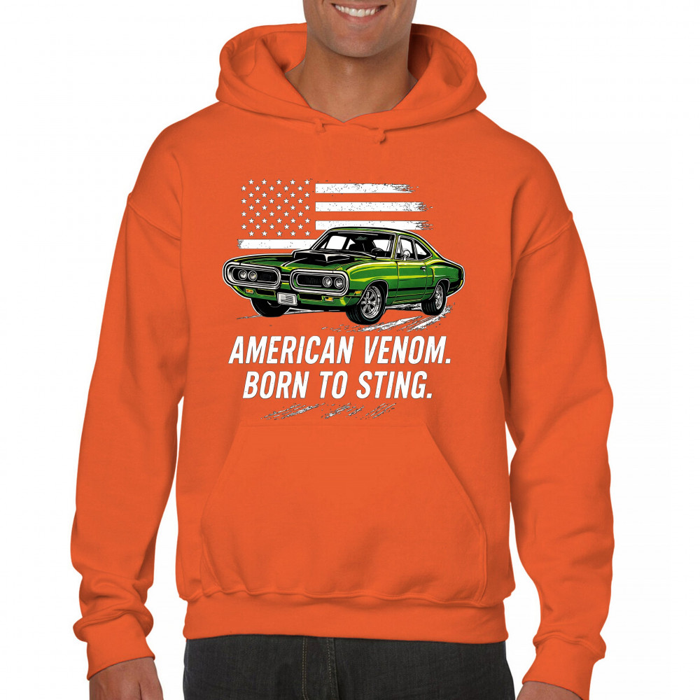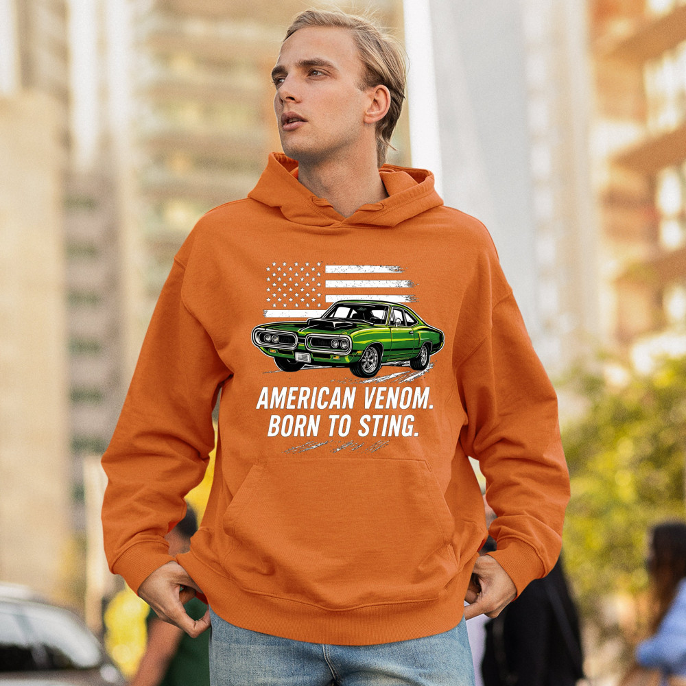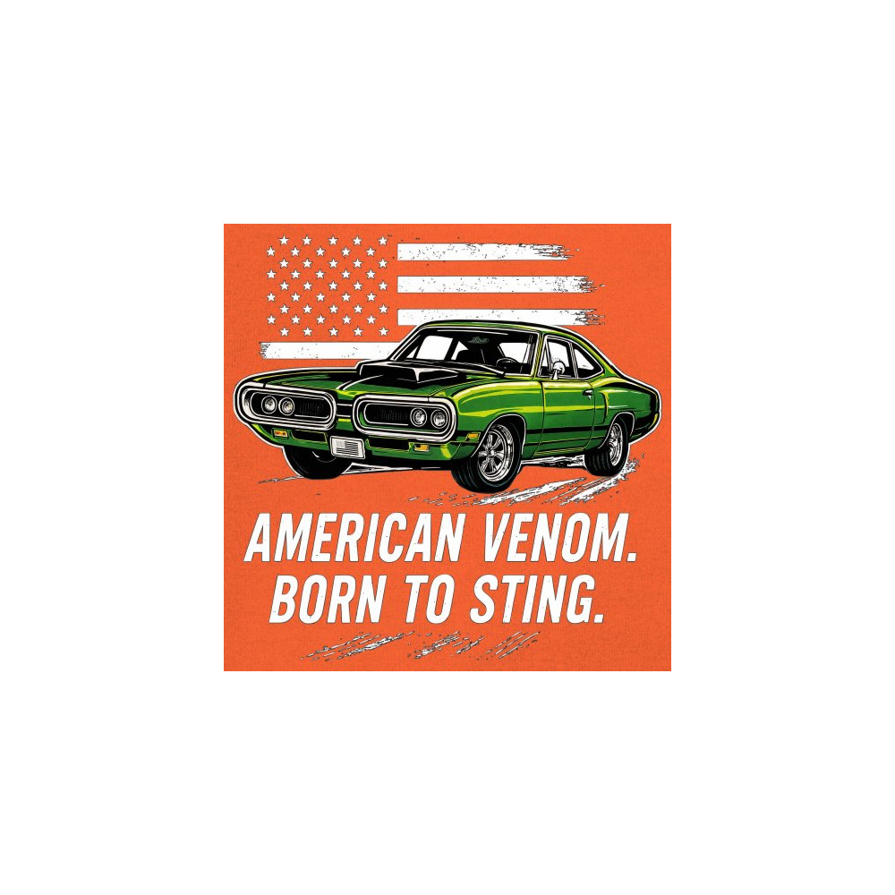 Inject venom into your street style with this bold green muscle car design. With “Born to Sting†power and a backdrop of American pride, this graphic is perfect for Scat fans, gearheads, and drivers who embrace speed, dominance, and the sound of true muscle. Rule car meets, rev battles, and highway runs with unmatched attitude.
