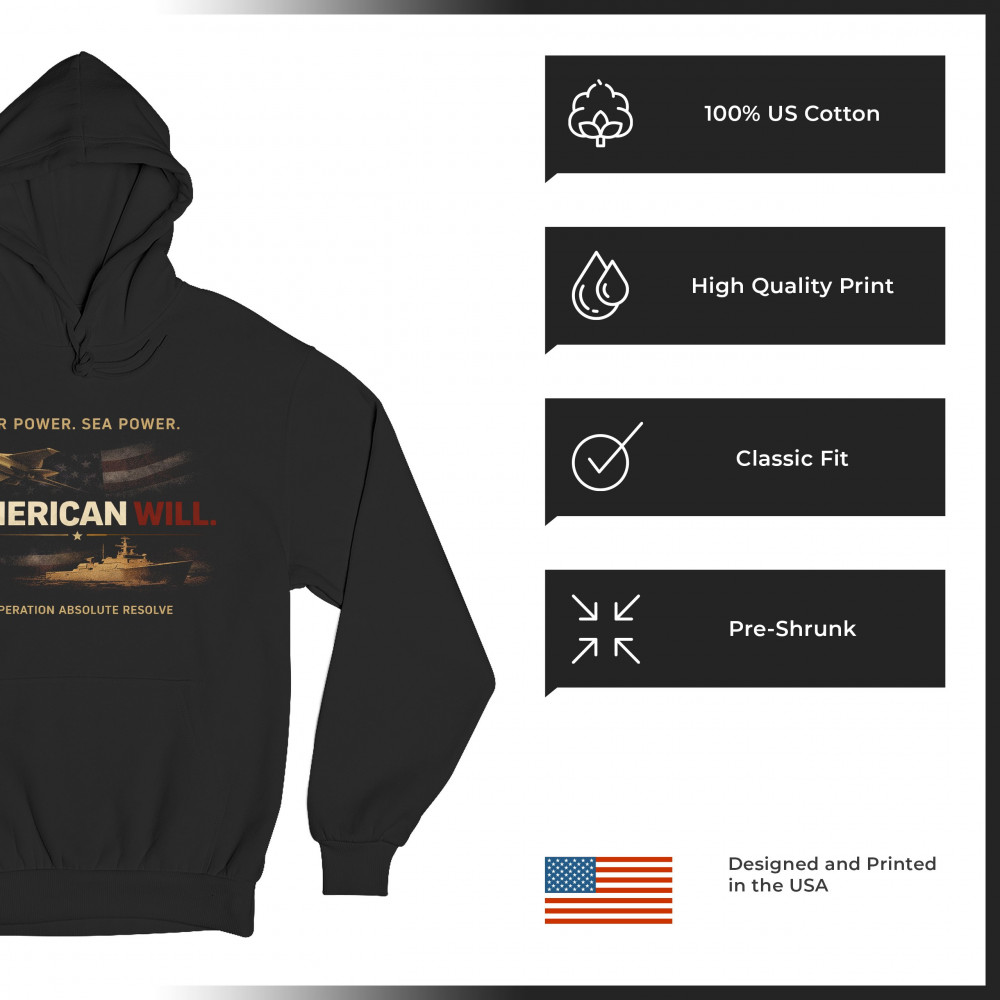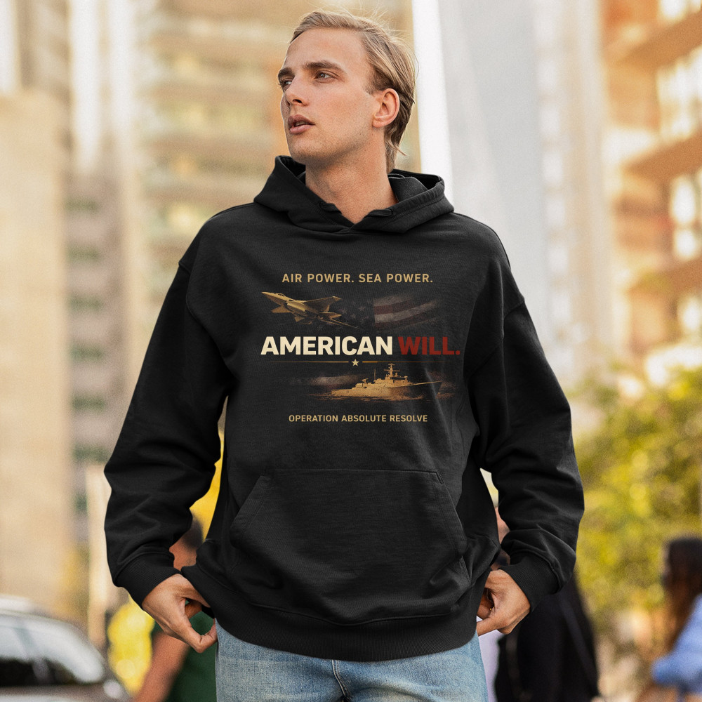 AMERICAN WILL unisex hoodie venezuela operation absolute resolve usa black
