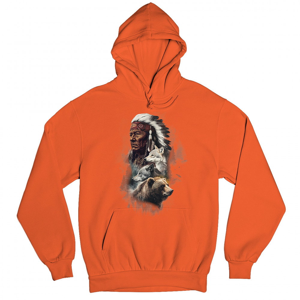 Celebrate spiritual strength and heritage with this design featuring a Native American elder alongside wolves and a bear. This tribal and totemic art reflects wisdom, guardianship, and deep forest spirit energy. Perfect for cultural pride, animal lovers, and those connected to spiritual symbolism in nature.