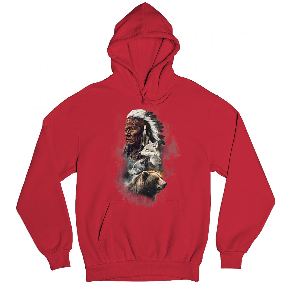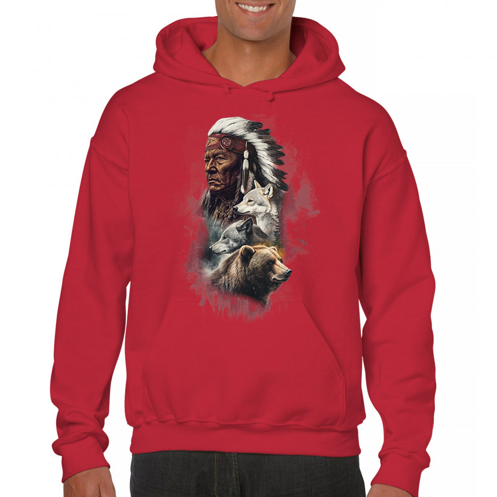 Celebrate spiritual strength and heritage with this design featuring a Native American elder alongside wolves and a bear. This tribal and totemic art reflects wisdom, guardianship, and deep forest spirit energy. Perfect for cultural pride, animal lovers, and those connected to spiritual symbolism in nature.