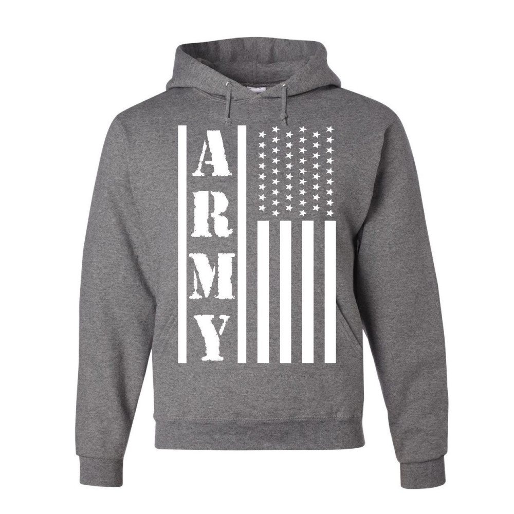 ARMY FLAG MILITARY hoodie patriot veteran stars & stripes honor sweatshirt gray