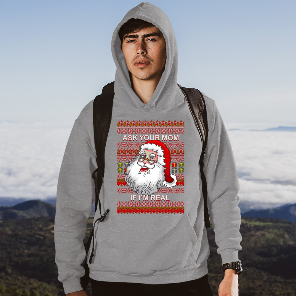 ASK YOUR MOM IF I'M REAL sweatshirt ugly sweater christmas santa claus hoodie gray