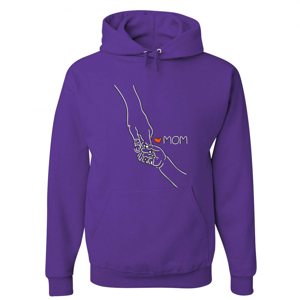 BABY HOLDING MOTHER'S HAND sweatshirt i love my mom mother's day hoodie purple