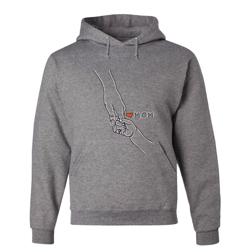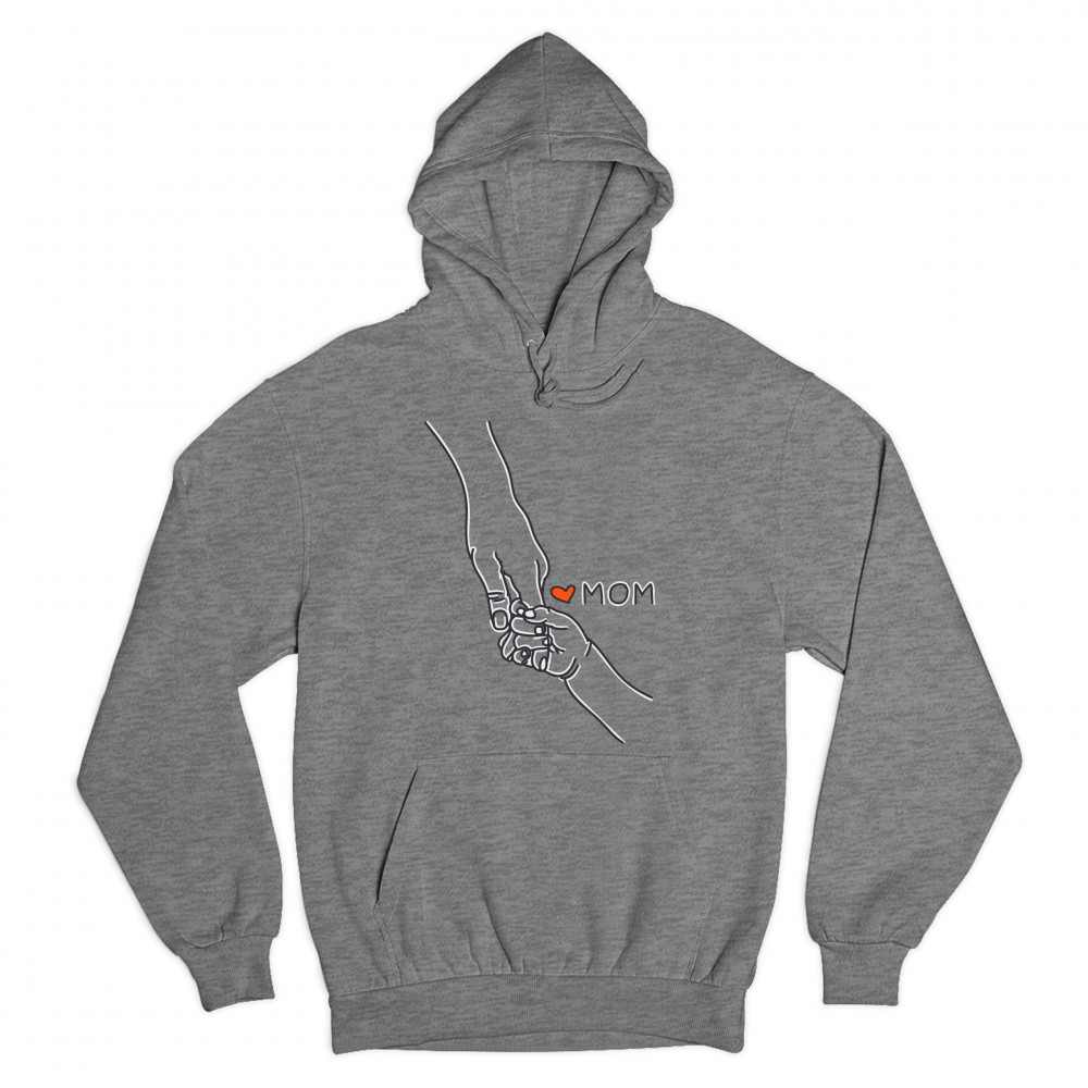 BABY HOLDING MOTHER'S HAND sweatshirt i love my mom mother's day hoodie gray