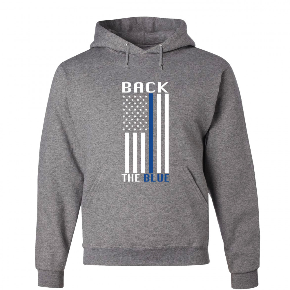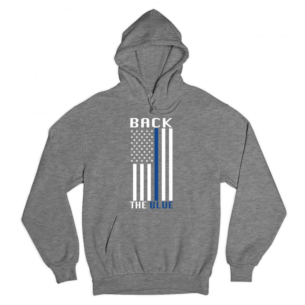 BACK THE BLUE AMERICAN FLAG sweatshirt police law enforcement hoodie gray