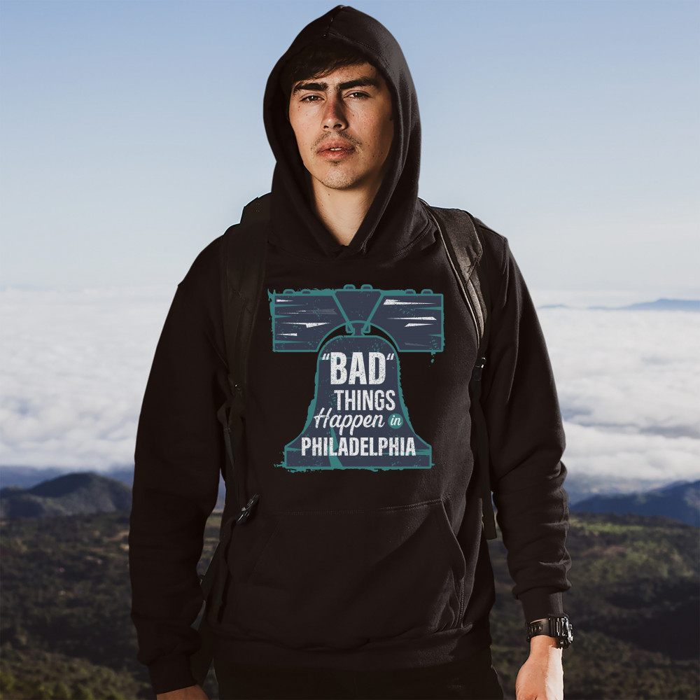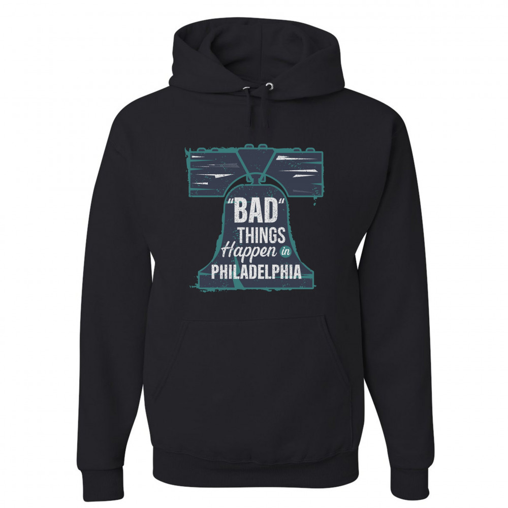 A funny print featuring the famous Liberty Bell located in Philadelphia, Pennsylvania. On the Bell it is written: "Bad things happen in Philadelphia". The word "bad" is in air quotes. It is a great choice for anyone who closely follows politics.