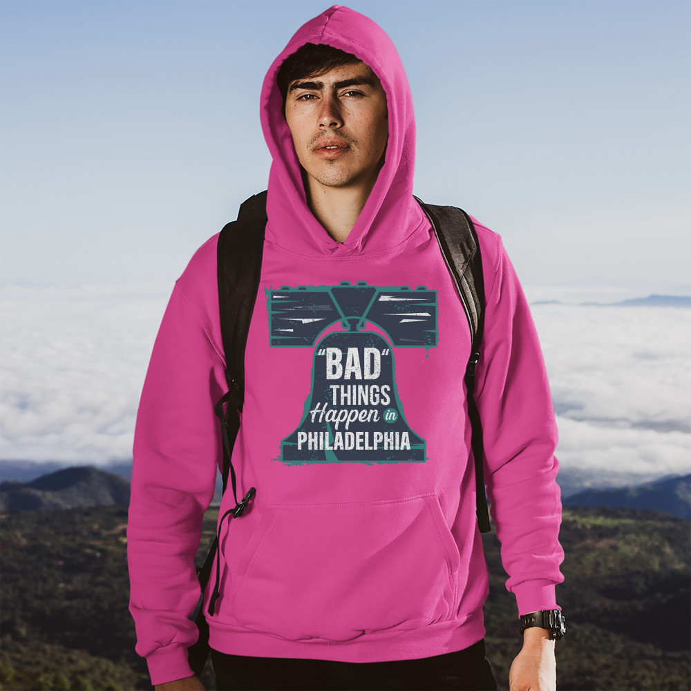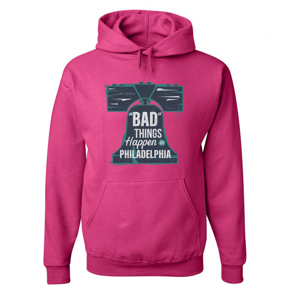 A funny print featuring the famous Liberty Bell located in Philadelphia, Pennsylvania. On the Bell it is written: "Bad things happen in Philadelphia". The word "bad" is in air quotes. It is a great choice for anyone who closely follows politics.