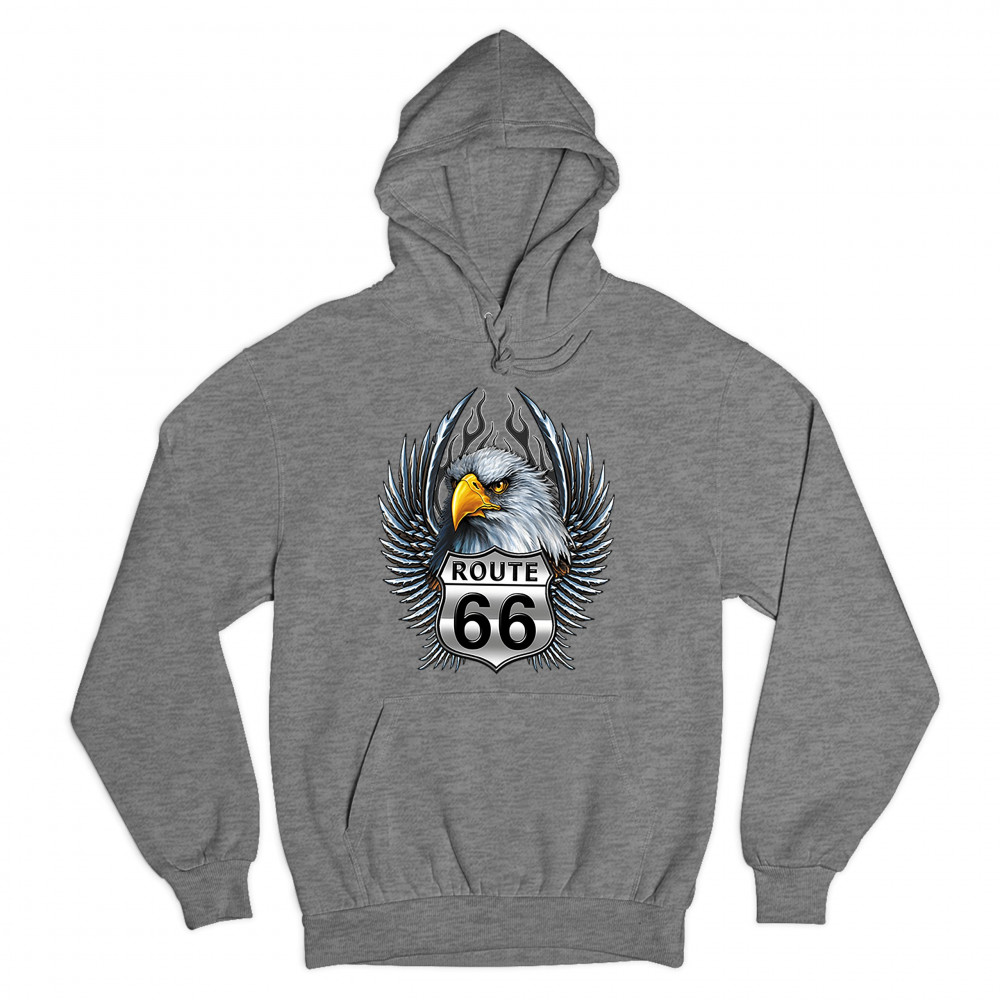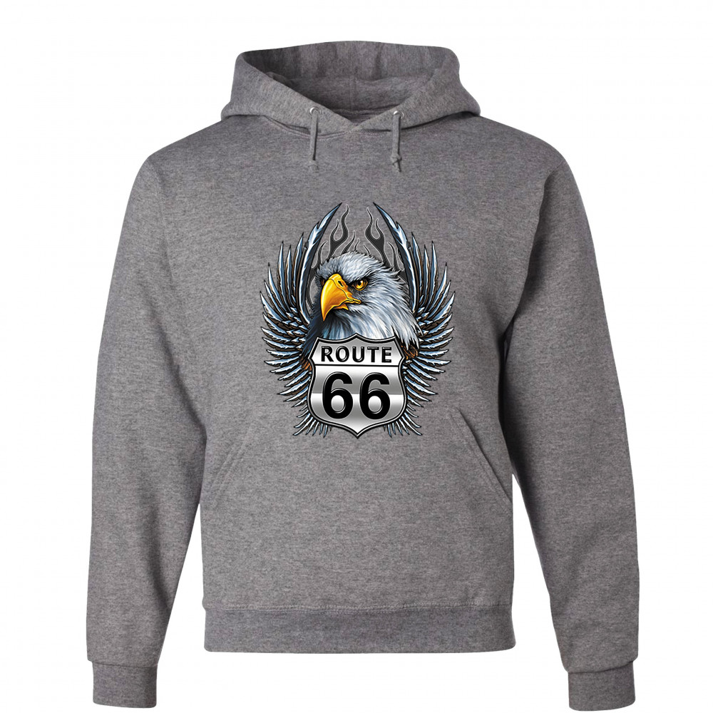 BALD EAGLE ROUTE 66 ROAD SIGN sweatshirt live to ride born to be wild hoodie gray