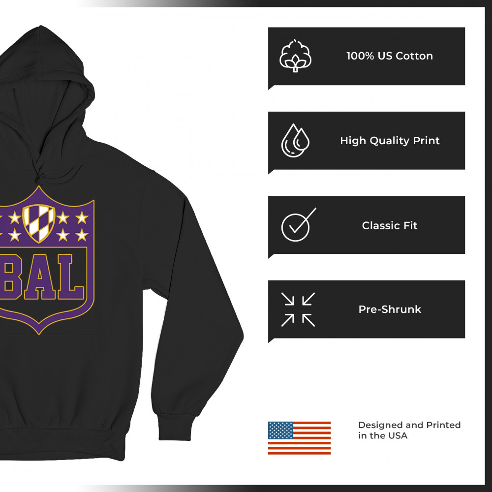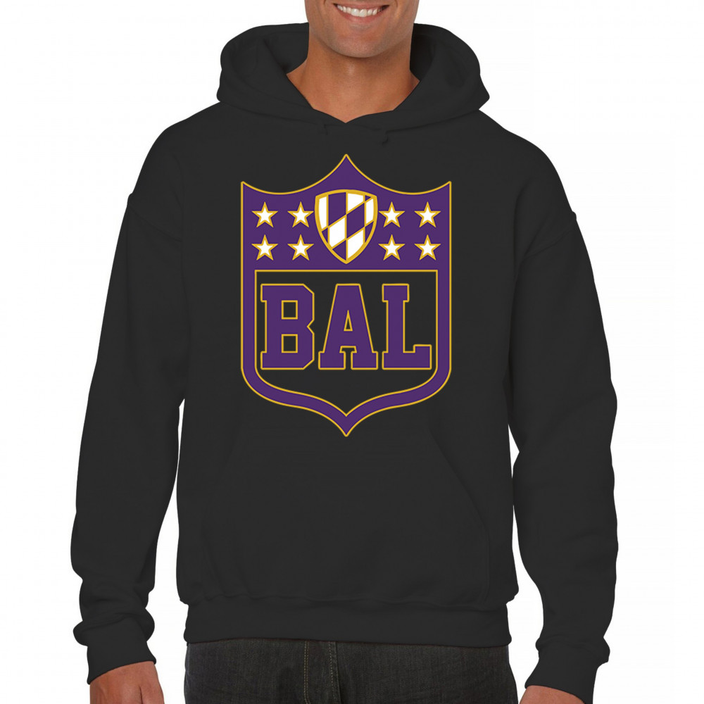 Celebrate your Baltimore pride with this bold BAL shield design. Perfect for football season, this Baltimore athletic shirt blends retro Baltimore football shirt style with collegiate energy. From tailgate party Baltimore tees to vintage BAL sports shirts, it’s built for fans who thrive on touchdown vibes, football culture, and Baltimore city pride. A shield logo Baltimore shirt every fan will love.