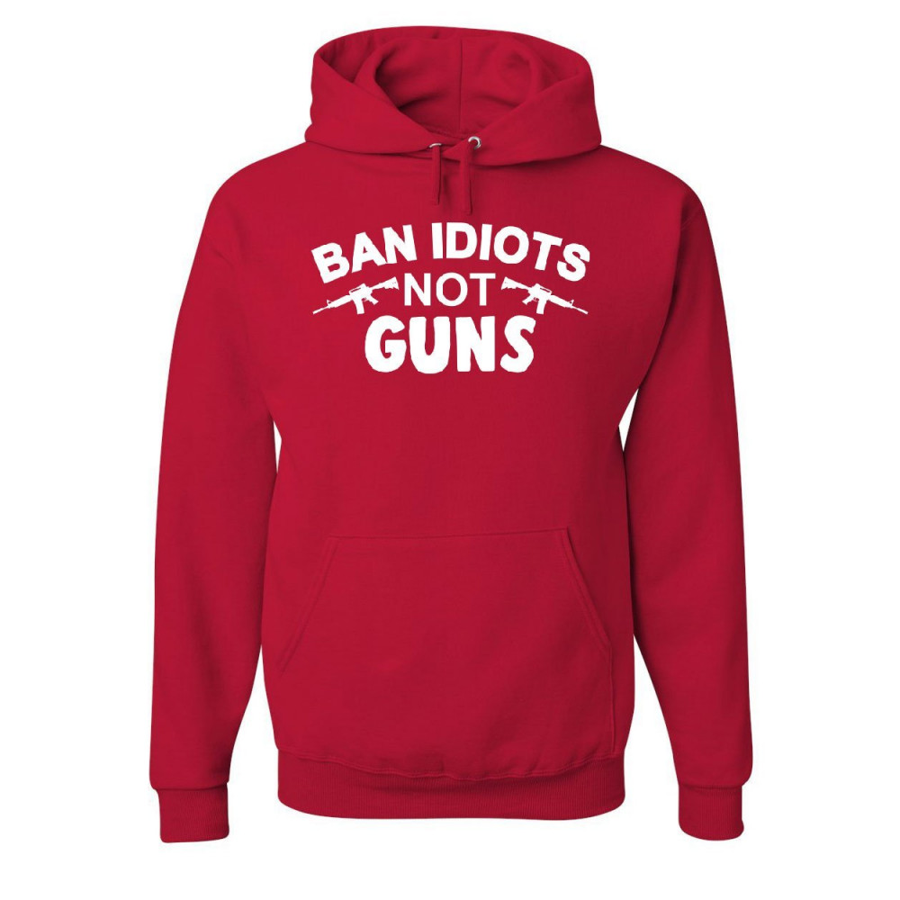 BAN IDIOTS NOT GUNS hoodie patriot 2nd amendment pro guns arms sweatshirt red