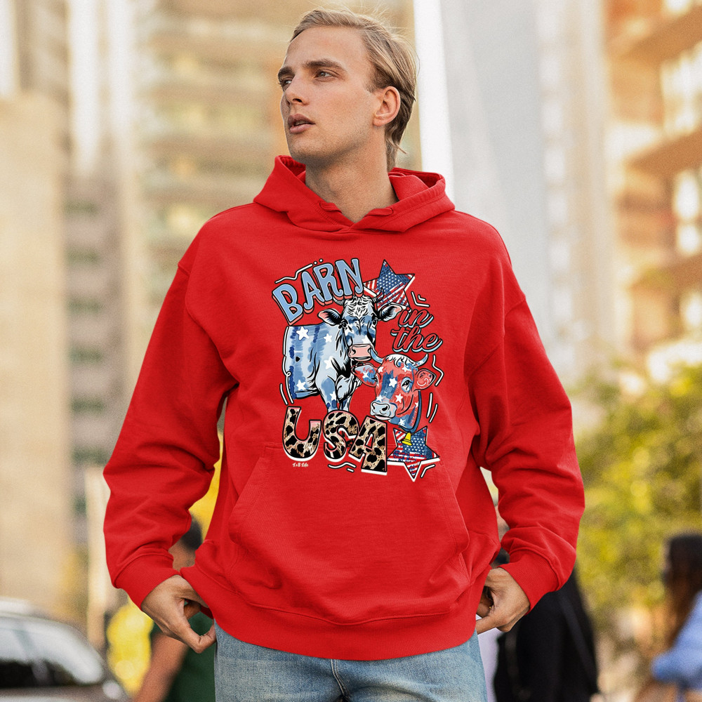 Celebrate American farming and patriotic spirit with our playful "Barn in the USA" design, a blend of whimsy and pride.