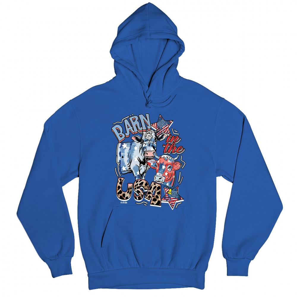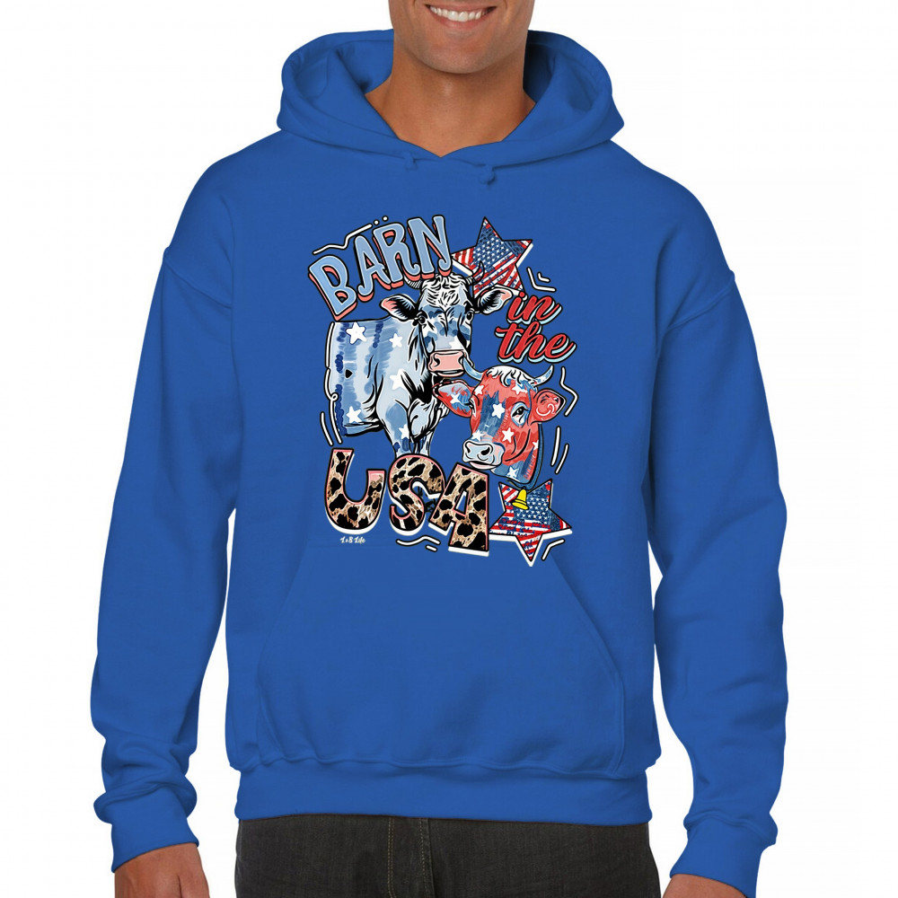 Celebrate American farming and patriotic spirit with our playful "Barn in the USA" design, a blend of whimsy and pride.