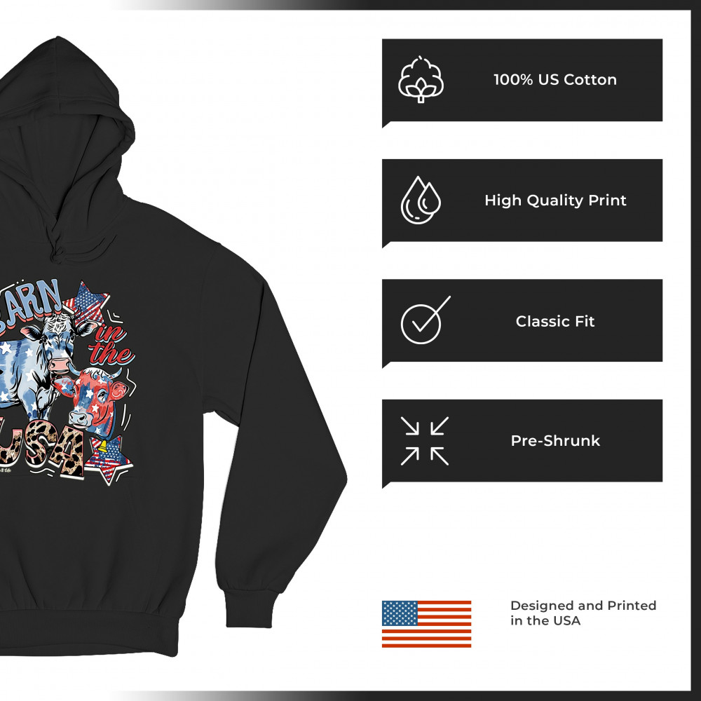 Celebrate American farming and patriotic spirit with our playful "Barn in the USA" design, a blend of whimsy and pride.