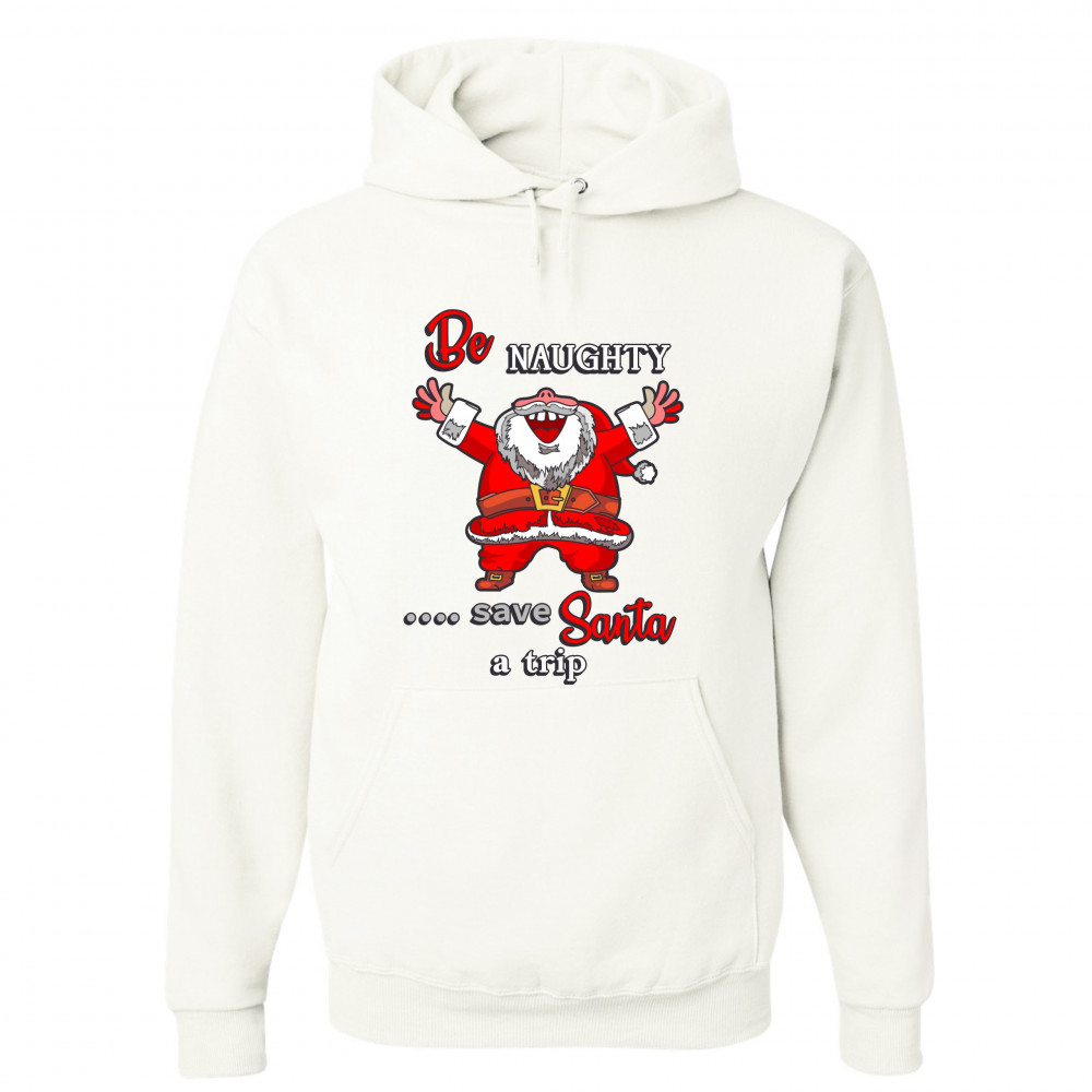 BE NAUGHTY SAVE SANTA A TRIP sweatshirt holiday spirit christmas eve hoodie white