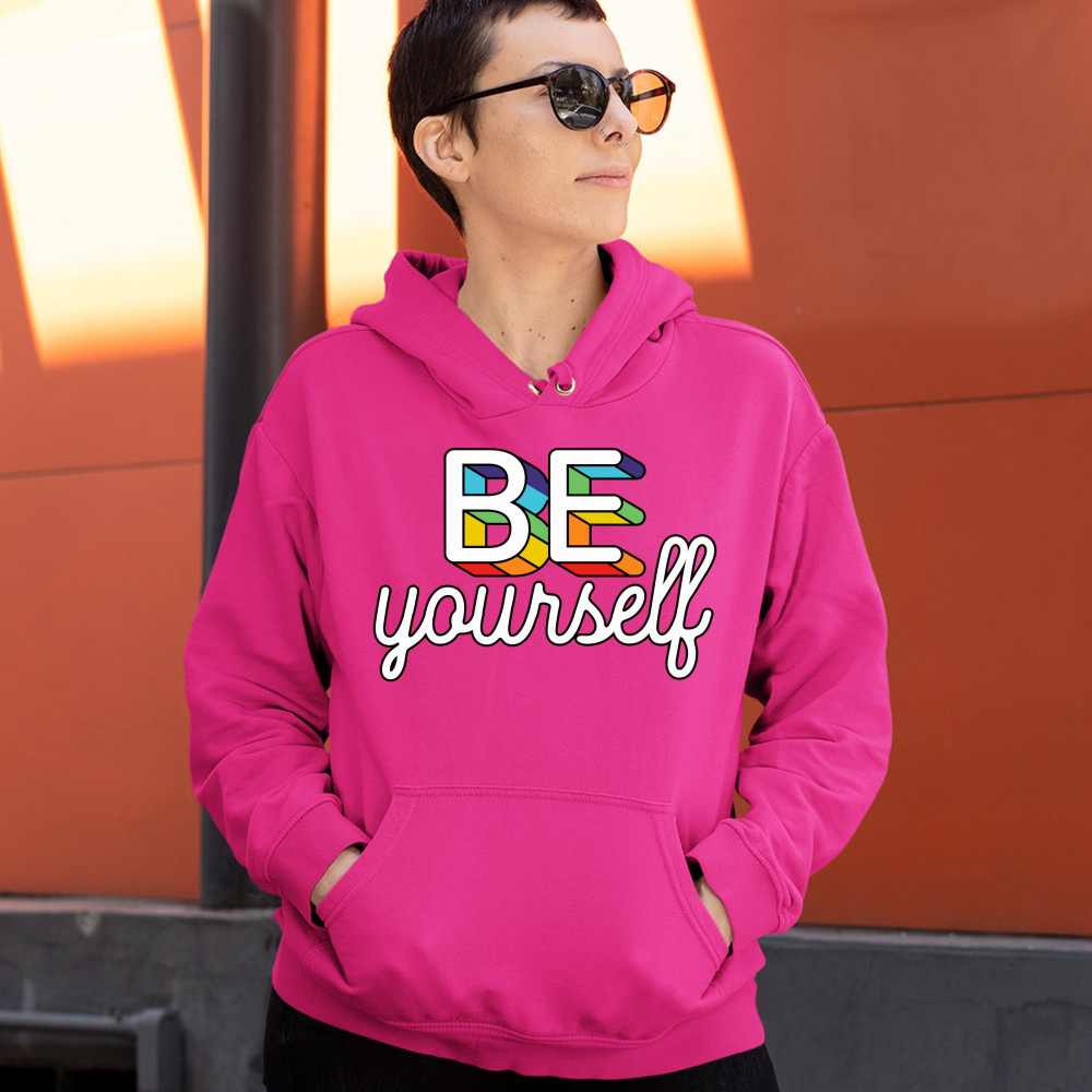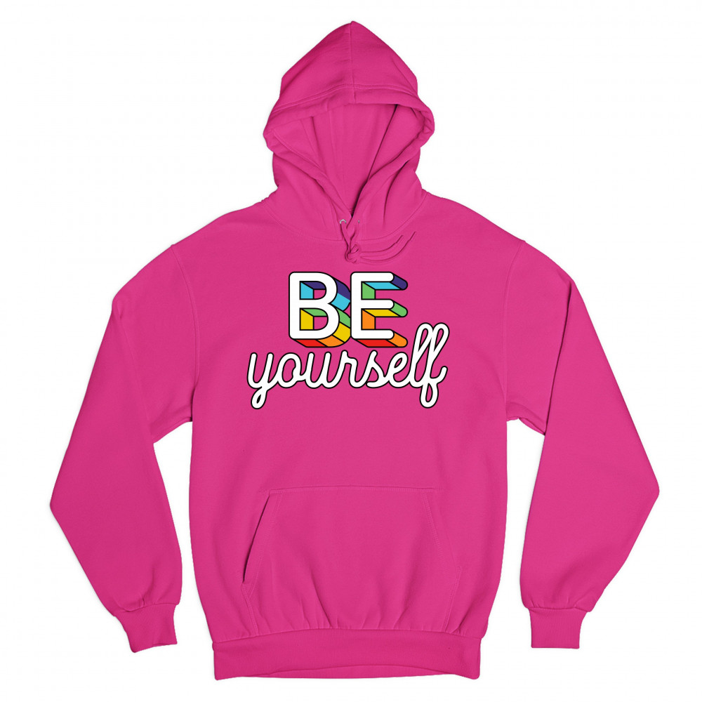 BE YOURSELF sweatshirt lgbt support gay pride rainbow good vibes ally hoodie pink