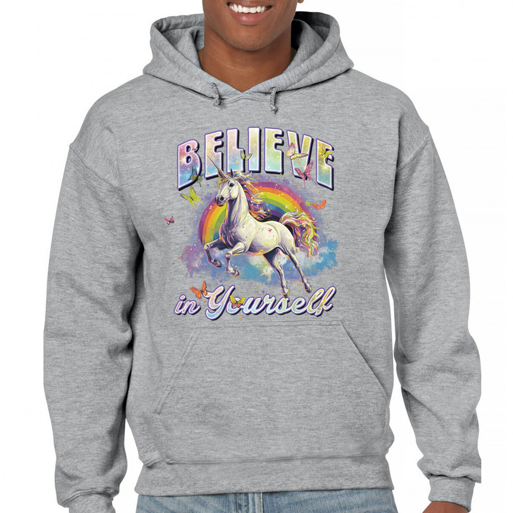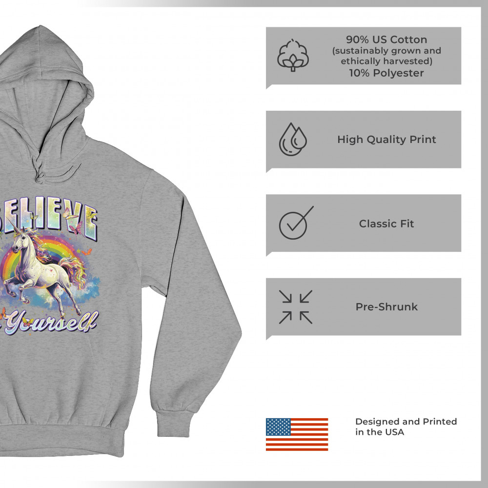 Bring fairytale magic into your everyday life with this Believe in Yourself unicorn rainbow design. Featuring whimsical unicorn shirt details, fantasy rainbow shirt colors, and enchanted unicorn shirt sparkle, it inspires positivity and confidence. A magical rainbow unicorn and galaxy unicorn shirt full of charm, sparkle unicorn shirt vibes, and uplifting energy for all dreamers.