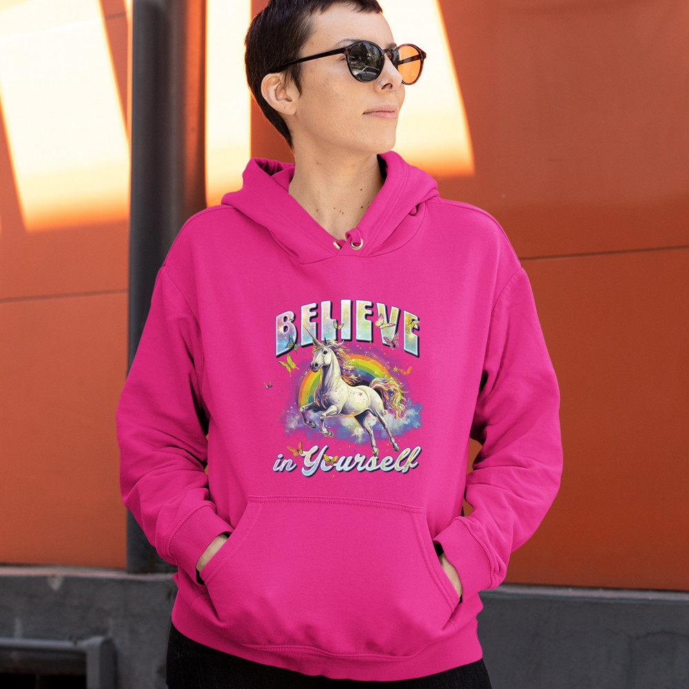 Bring fairytale magic into your everyday life with this Believe in Yourself unicorn rainbow design. Featuring whimsical unicorn shirt details, fantasy rainbow shirt colors, and enchanted unicorn shirt sparkle, it inspires positivity and confidence. A magical rainbow unicorn and galaxy unicorn shirt full of charm, sparkle unicorn shirt vibes, and uplifting energy for all dreamers.