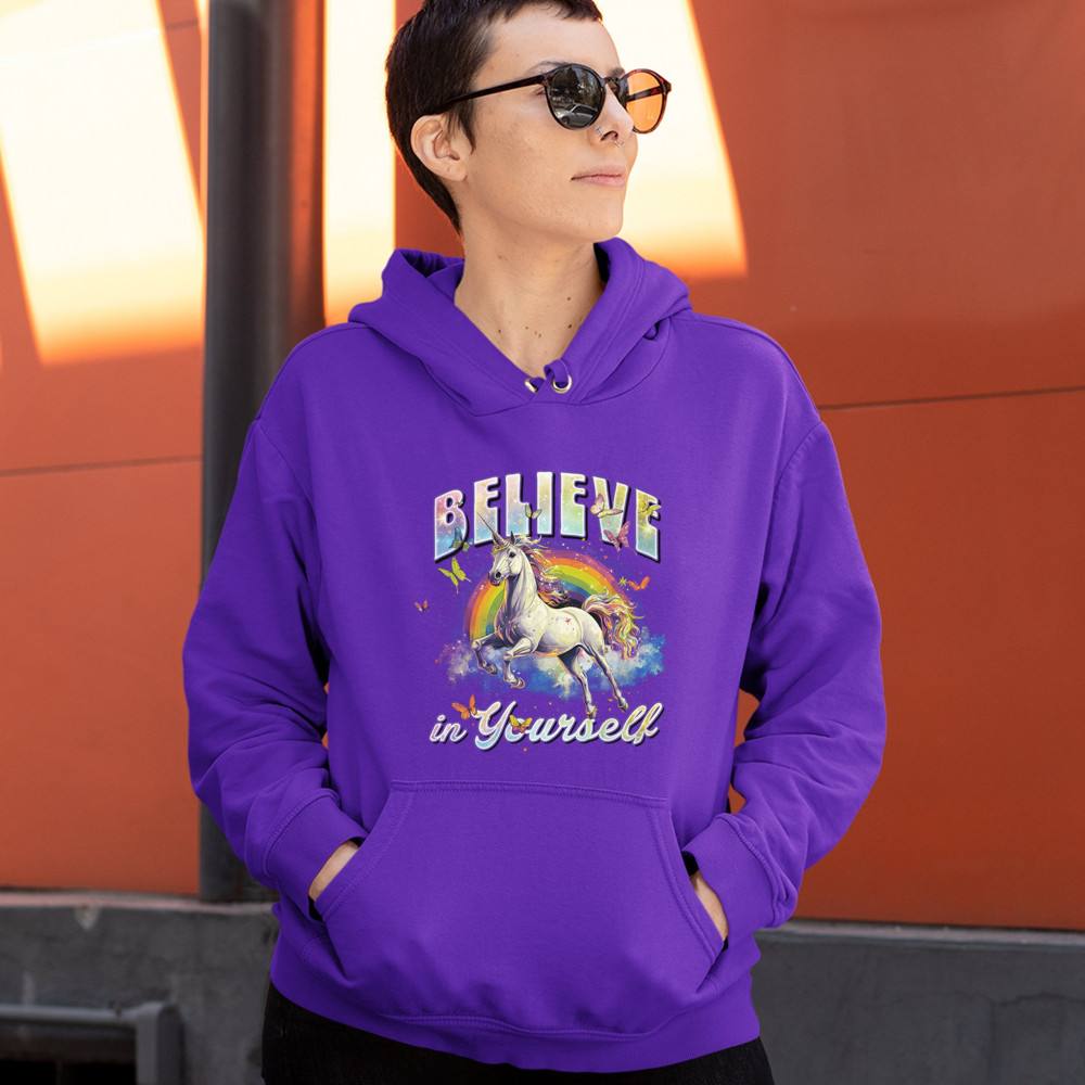 Bring fairytale magic into your everyday life with this Believe in Yourself unicorn rainbow design. Featuring whimsical unicorn shirt details, fantasy rainbow shirt colors, and enchanted unicorn shirt sparkle, it inspires positivity and confidence. A magical rainbow unicorn and galaxy unicorn shirt full of charm, sparkle unicorn shirt vibes, and uplifting energy for all dreamers.