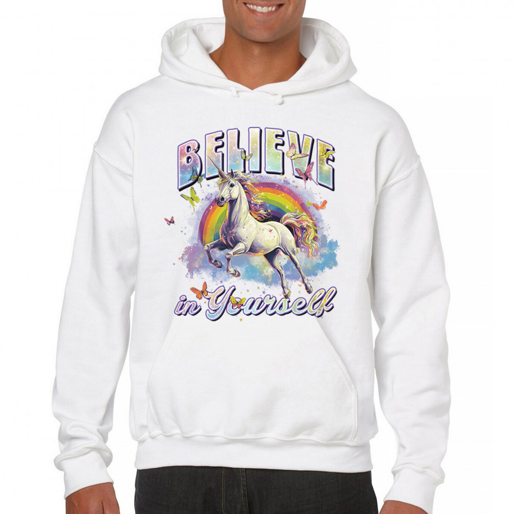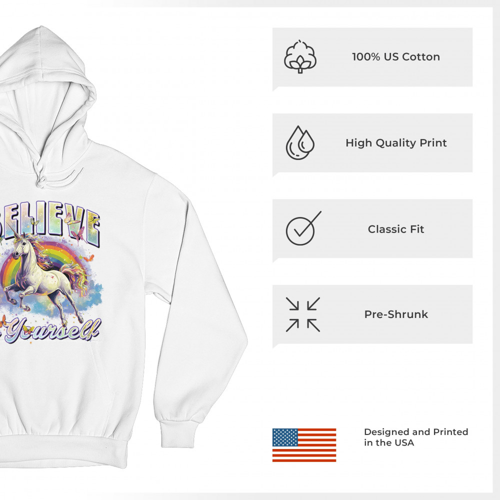 Bring fairytale magic into your everyday life with this Believe in Yourself unicorn rainbow design. Featuring whimsical unicorn shirt details, fantasy rainbow shirt colors, and enchanted unicorn shirt sparkle, it inspires positivity and confidence. A magical rainbow unicorn and galaxy unicorn shirt full of charm, sparkle unicorn shirt vibes, and uplifting energy for all dreamers.