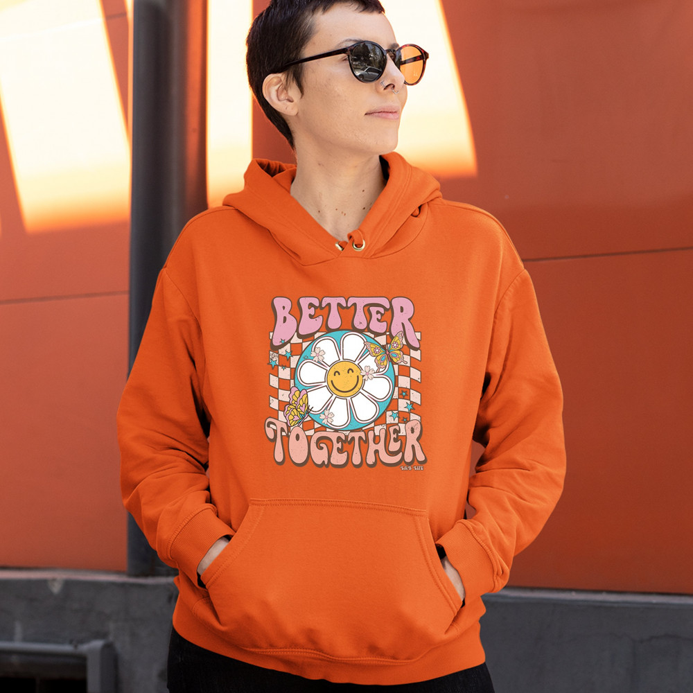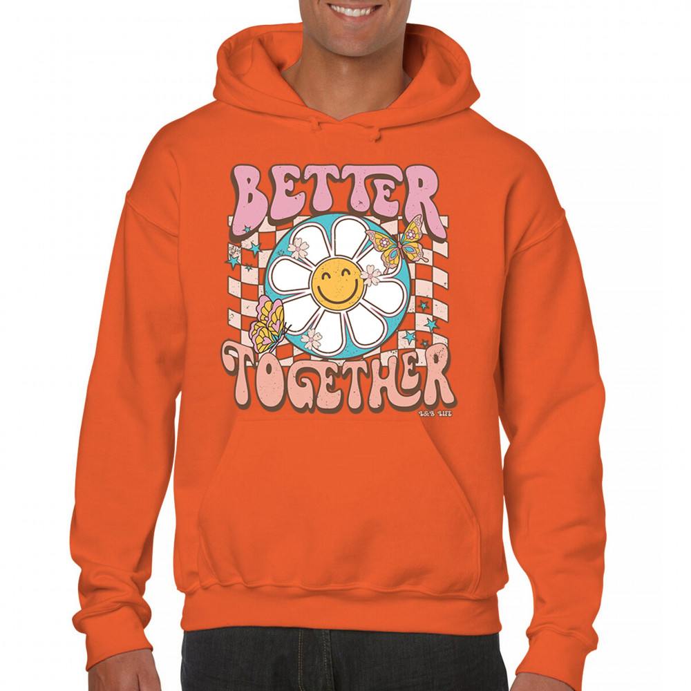 Join us in celebrating the simple joys with our "Better Together" design, where happiness blooms and friendships flutter like butterflies. This artwork is a sweet embrace of unity, crafted to bring smiles and a touch of retro charm to your life. It’s a delightful addition to any collection, symbolizing the belief that life's moments are sweeter shared. Adorn your favorite space with a design that's as warm and welcoming as a sunny day.