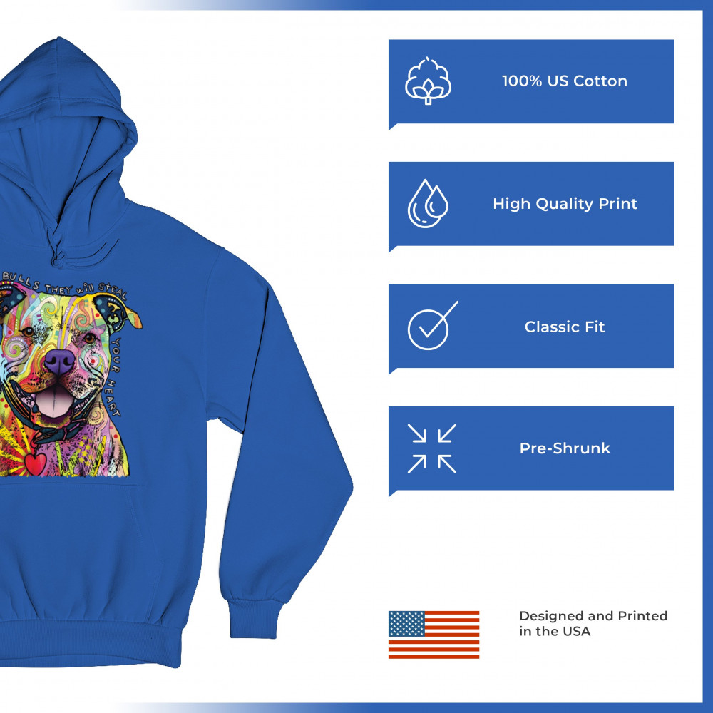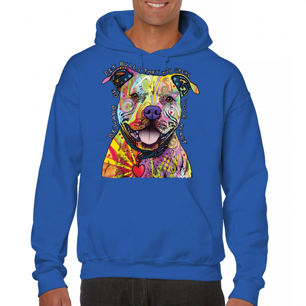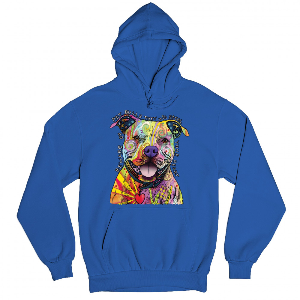 BEWARE OF PIT BULLS sweatshirt dean russo art colorful cute dog hoodie royal blue