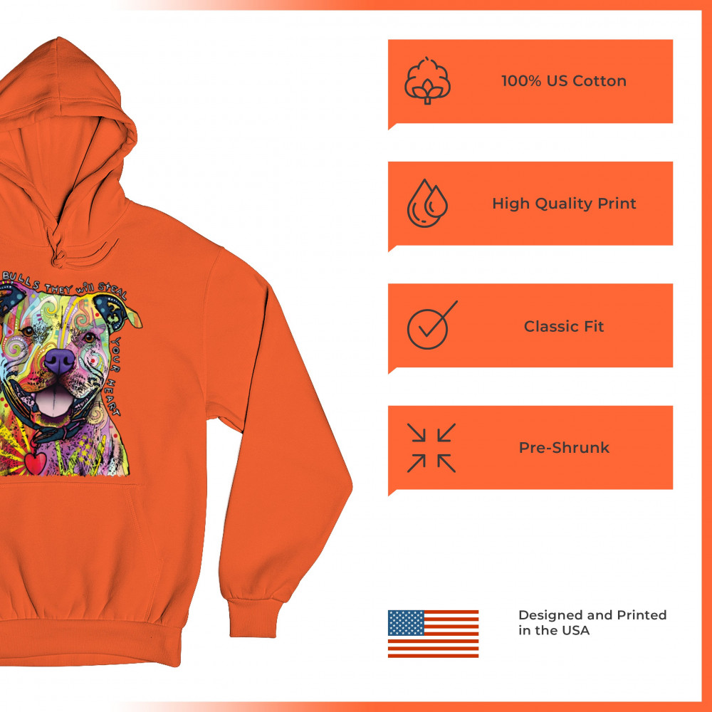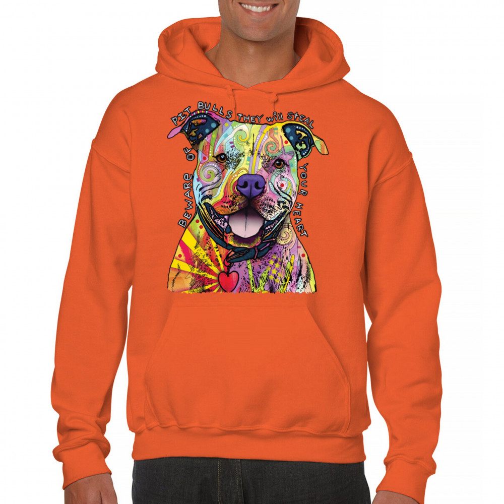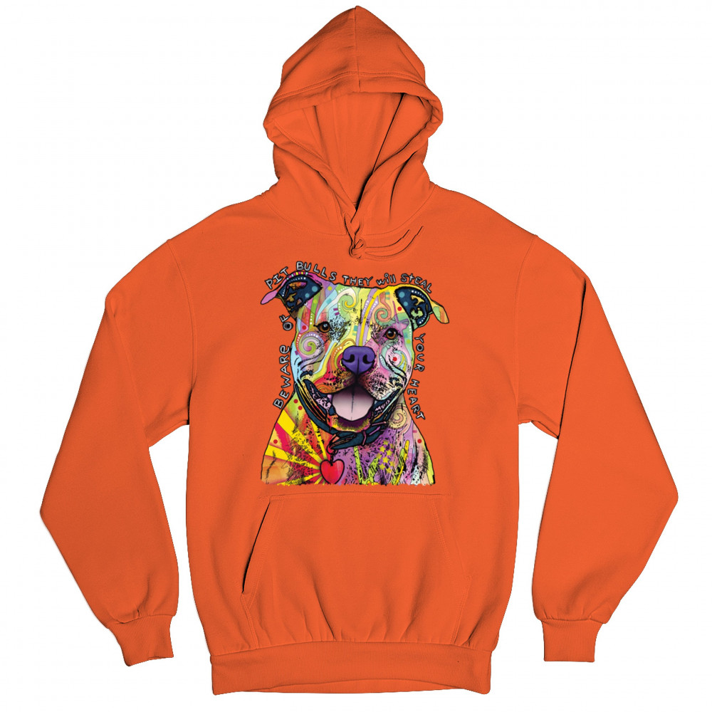 BEWARE OF PIT BULLS sweatshirt dean russo art colorful cute dog hoodie orange