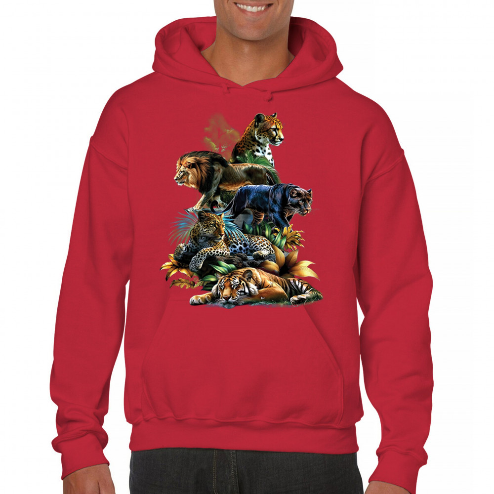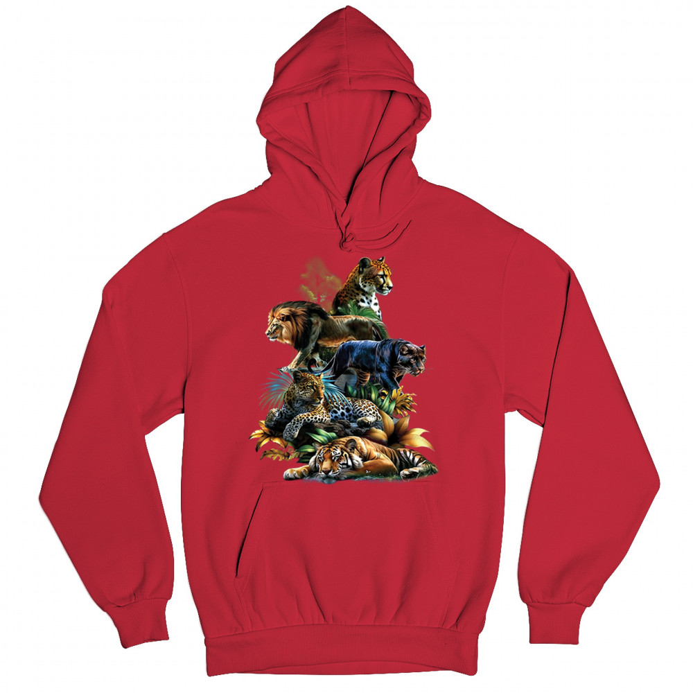 Bold big cat design with lion, tiger, leopard, cheetah, jaguar, and panther. A vivid tribute to wild nature, pride, and animal power.