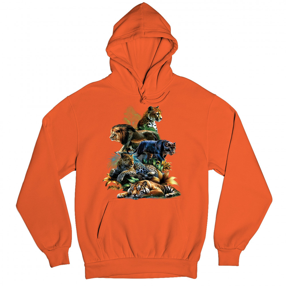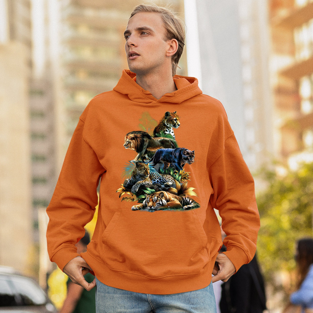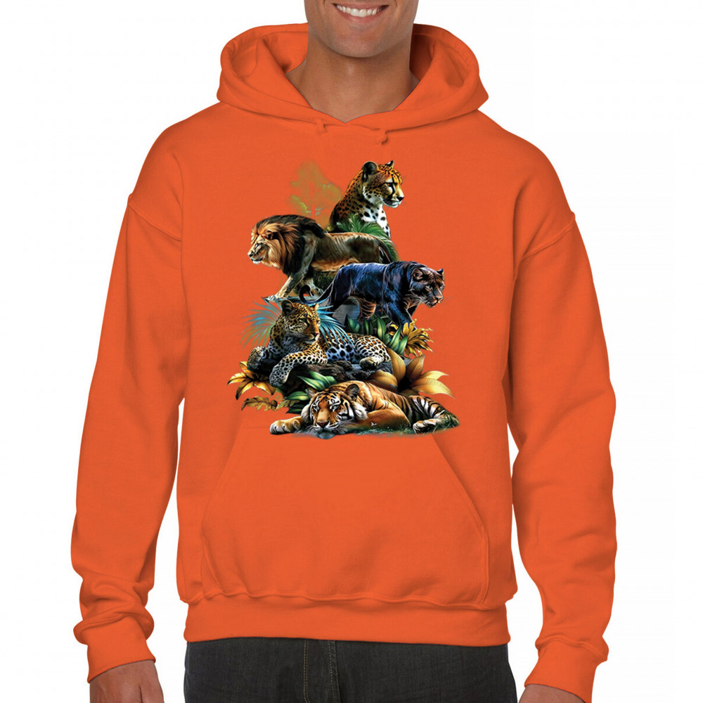 Bold big cat design with lion, tiger, leopard, cheetah, jaguar, and panther. A vivid tribute to wild nature, pride, and animal power.