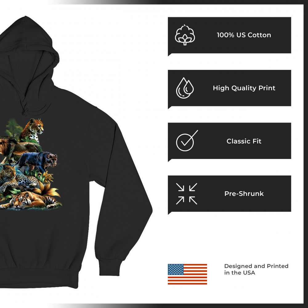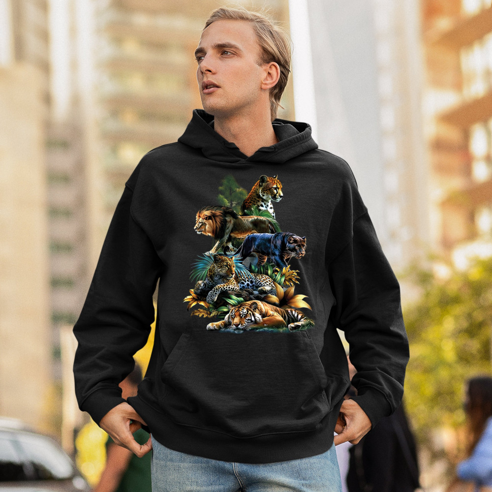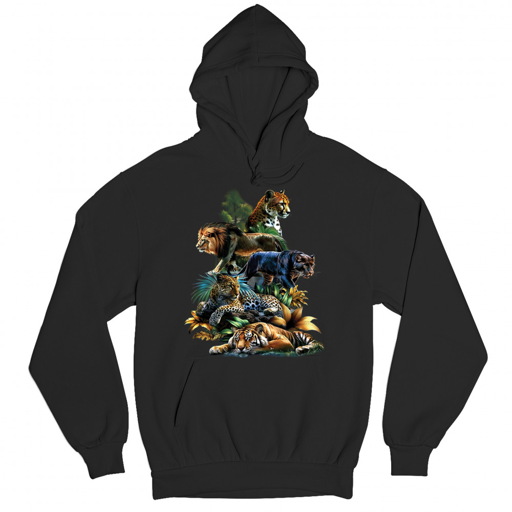 BIG CATS JUNGLE COLLAGE sweatshirt lion tiger leopard animal jaguar hoodie black