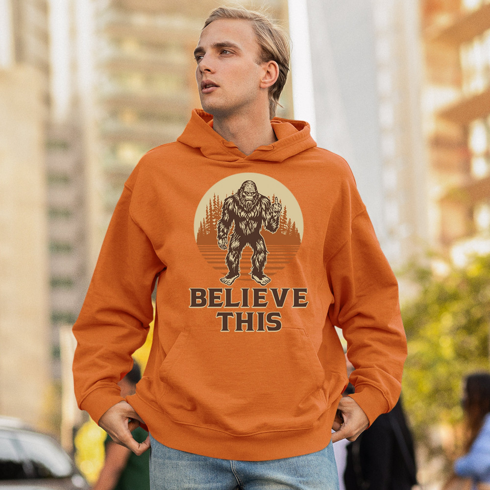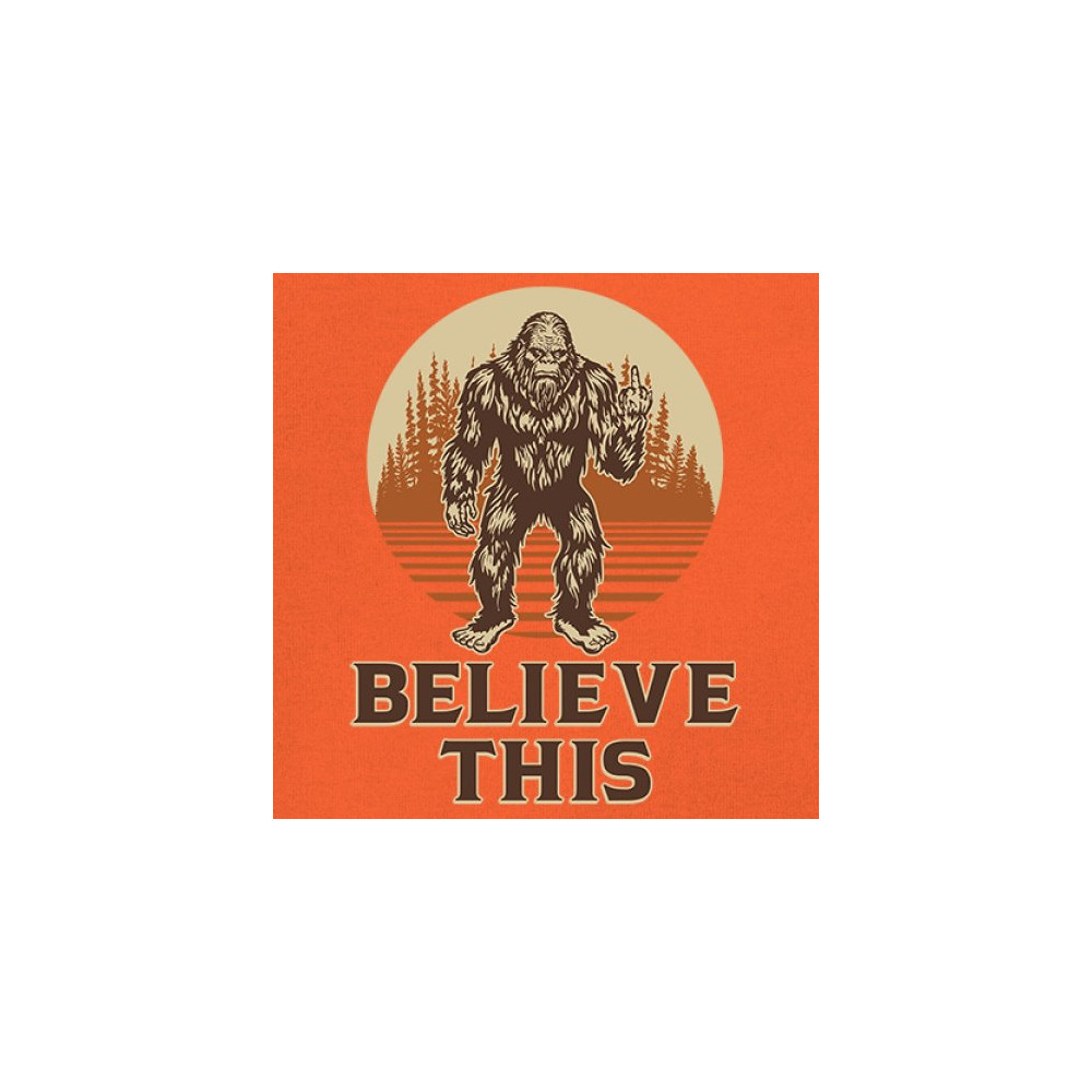 The Believe This Bigfoot design blends cryptid folklore with blunt attitude—because sometimes you just don’t care who believes. Featuring Bigfoot flipping the bird against a rustic tree line, it’s perfect for campers, rebels, and fans of sarcastic forest humor. Ideal for hikes, festivals, and off-grid living.