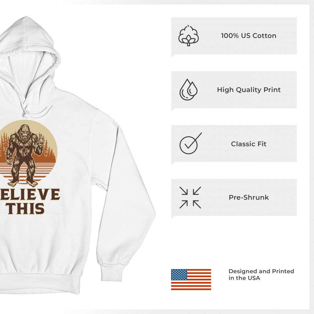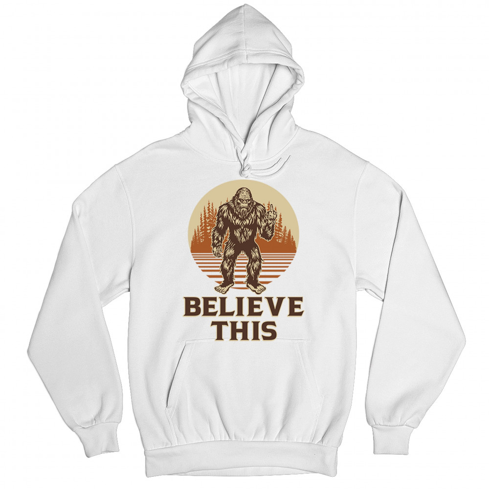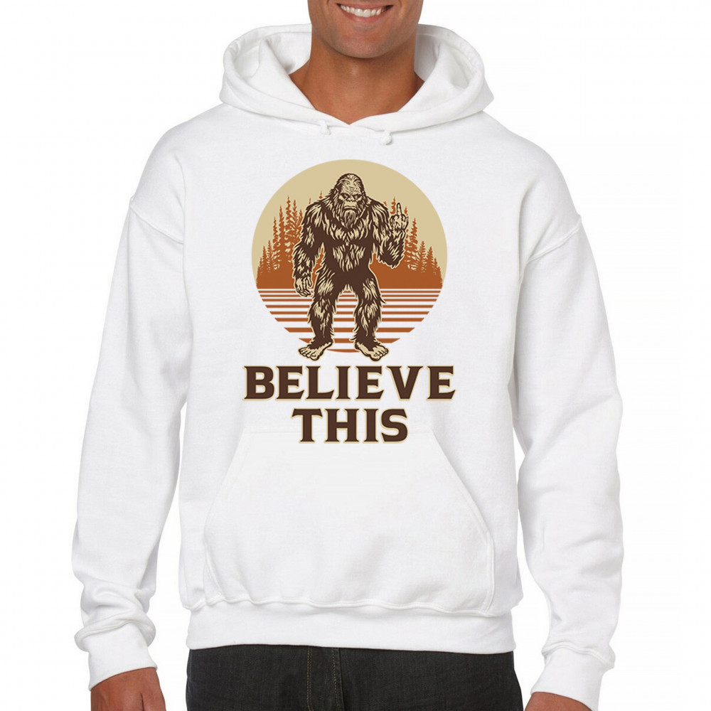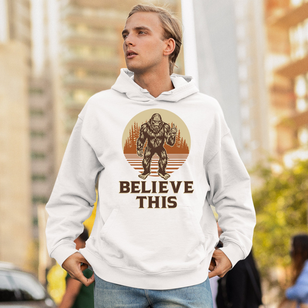 The Believe This Bigfoot design blends cryptid folklore with blunt attitude—because sometimes you just don’t care who believes. Featuring Bigfoot flipping the bird against a rustic tree line, it’s perfect for campers, rebels, and fans of sarcastic forest humor. Ideal for hikes, festivals, and off-grid living.