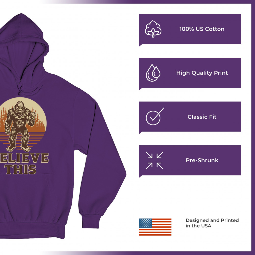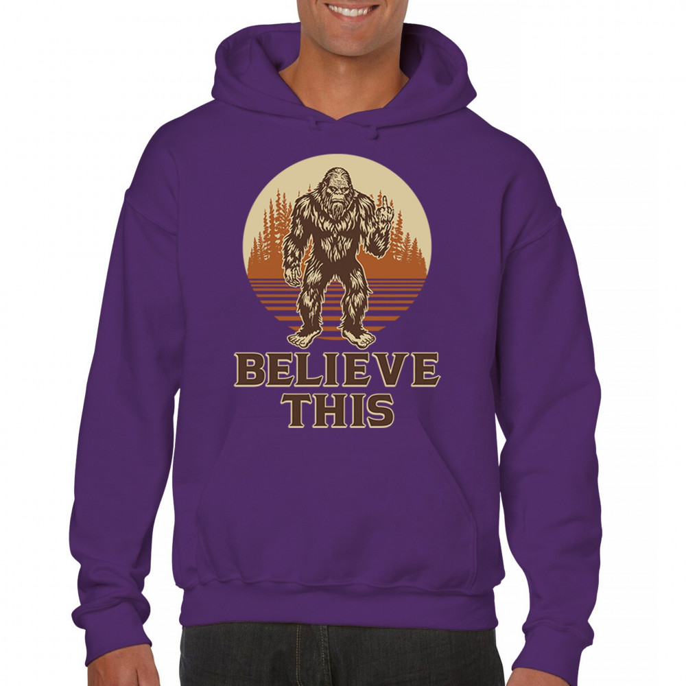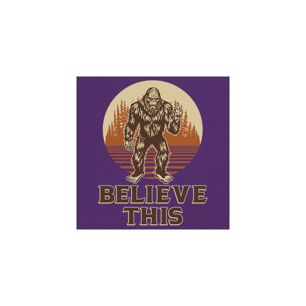 The Believe This Bigfoot design blends cryptid folklore with blunt attitude—because sometimes you just don’t care who believes. Featuring Bigfoot flipping the bird against a rustic tree line, it’s perfect for campers, rebels, and fans of sarcastic forest humor. Ideal for hikes, festivals, and off-grid living.