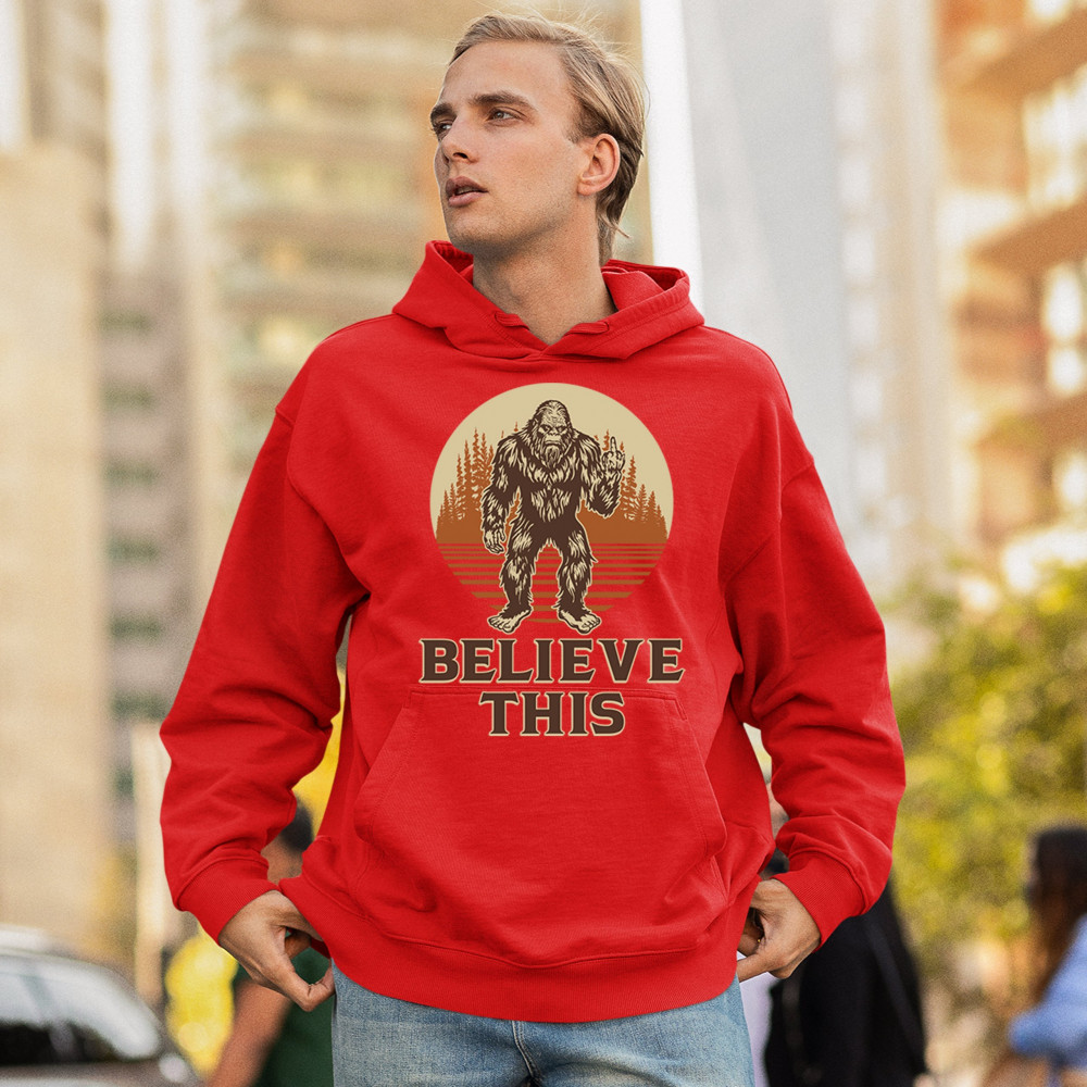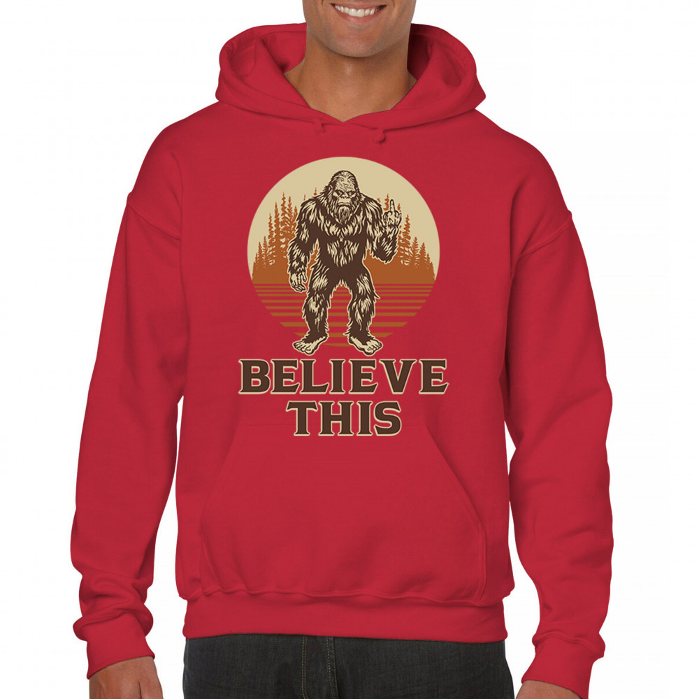 The Believe This Bigfoot design blends cryptid folklore with blunt attitude—because sometimes you just don’t care who believes. Featuring Bigfoot flipping the bird against a rustic tree line, it’s perfect for campers, rebels, and fans of sarcastic forest humor. Ideal for hikes, festivals, and off-grid living.
