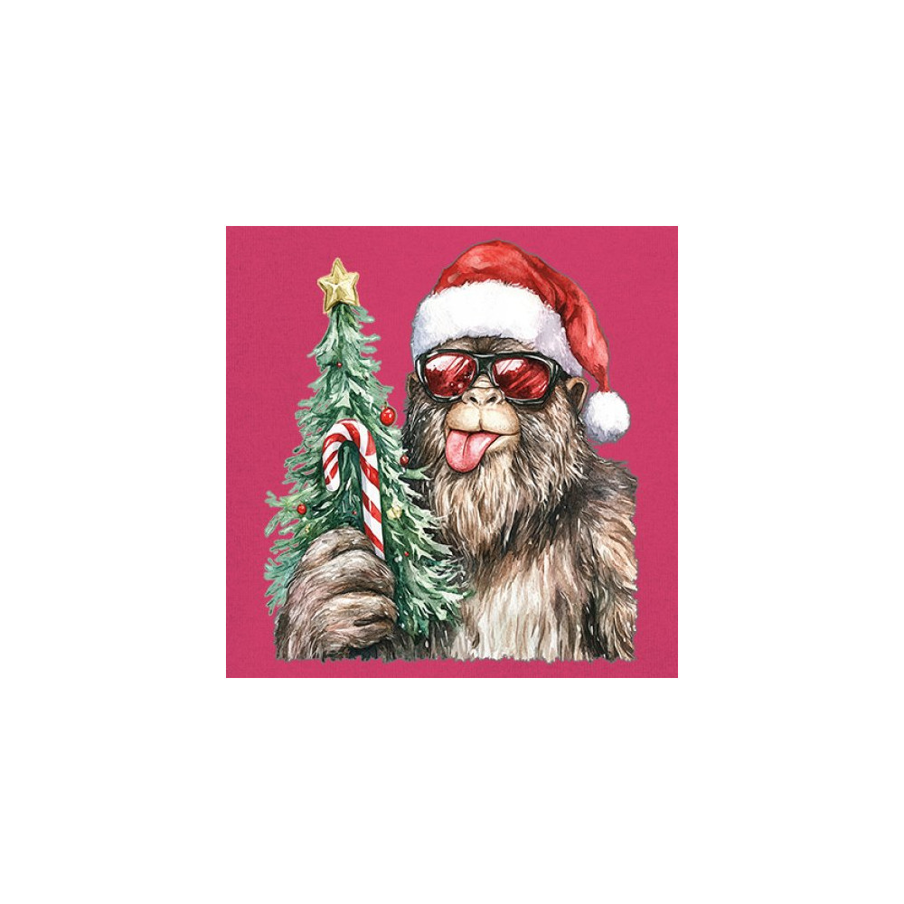 Bigfoot Christmas Santa shirt – festive Sasquatch holiday humor tee with Santa hat design, Xmas tree, candy cane, and funny Christmas style.