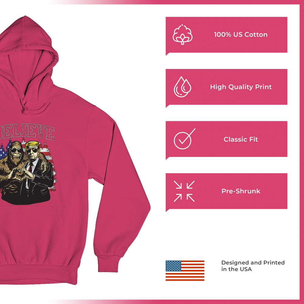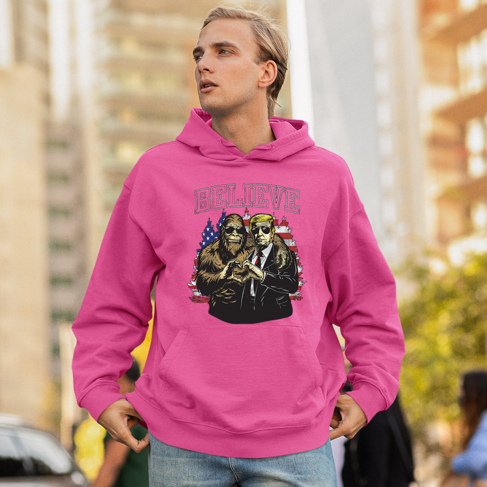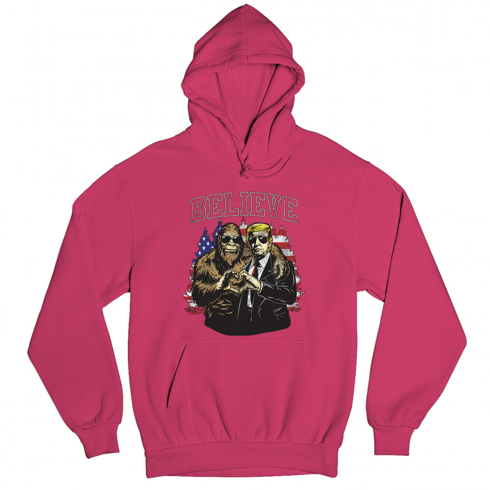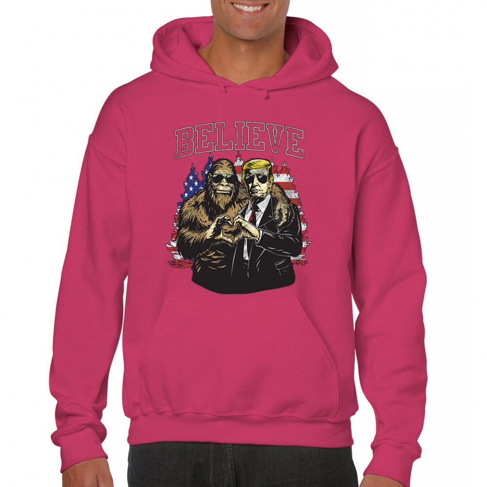The "Believe" design combines patriotic pride and conservative values with a touch of fun. Featuring Donald J. Trump and a loyal Bigfoot against the American flag, this graphic is perfect for Trump supporters, Republicans, and believers in America First. Celebrate the Red Wave, the 47th President, and the unstoppable fight for victory. Ideal for anyone with unwavering belief in the people's mandate.