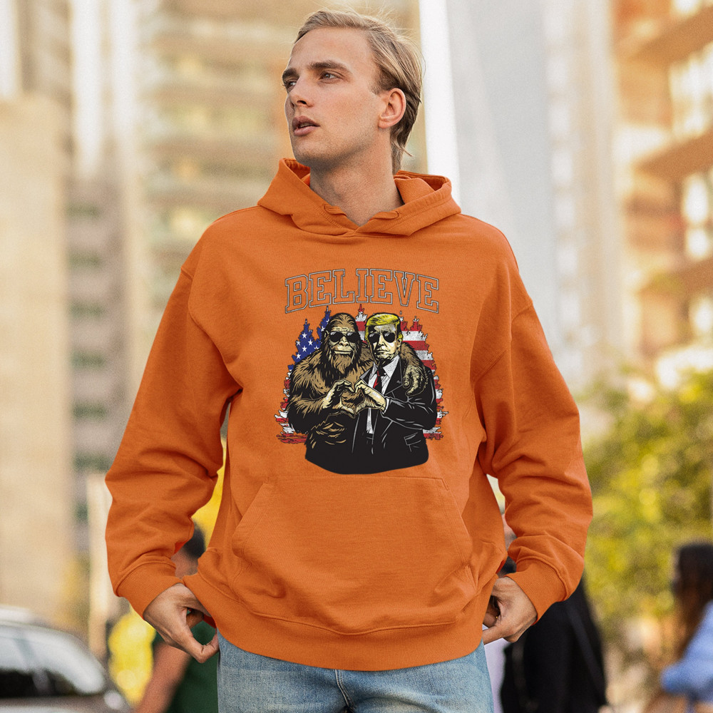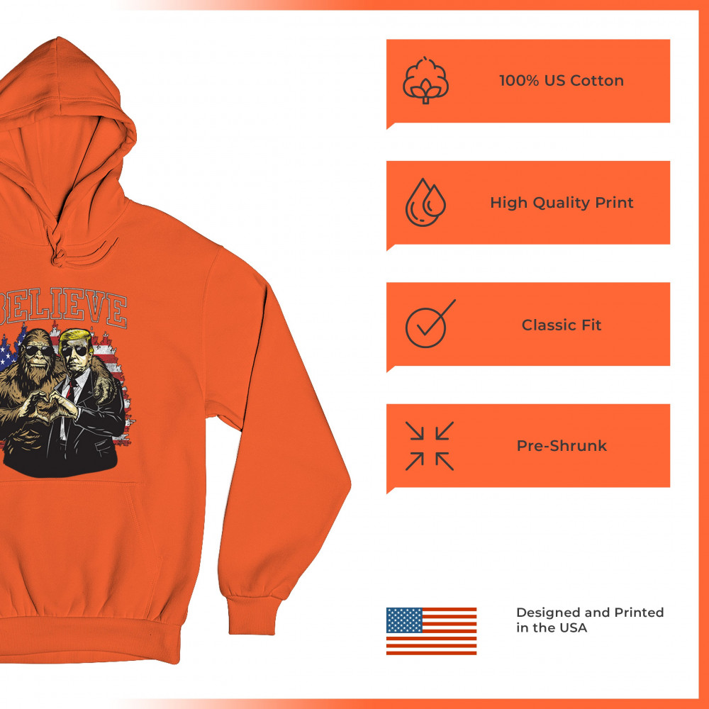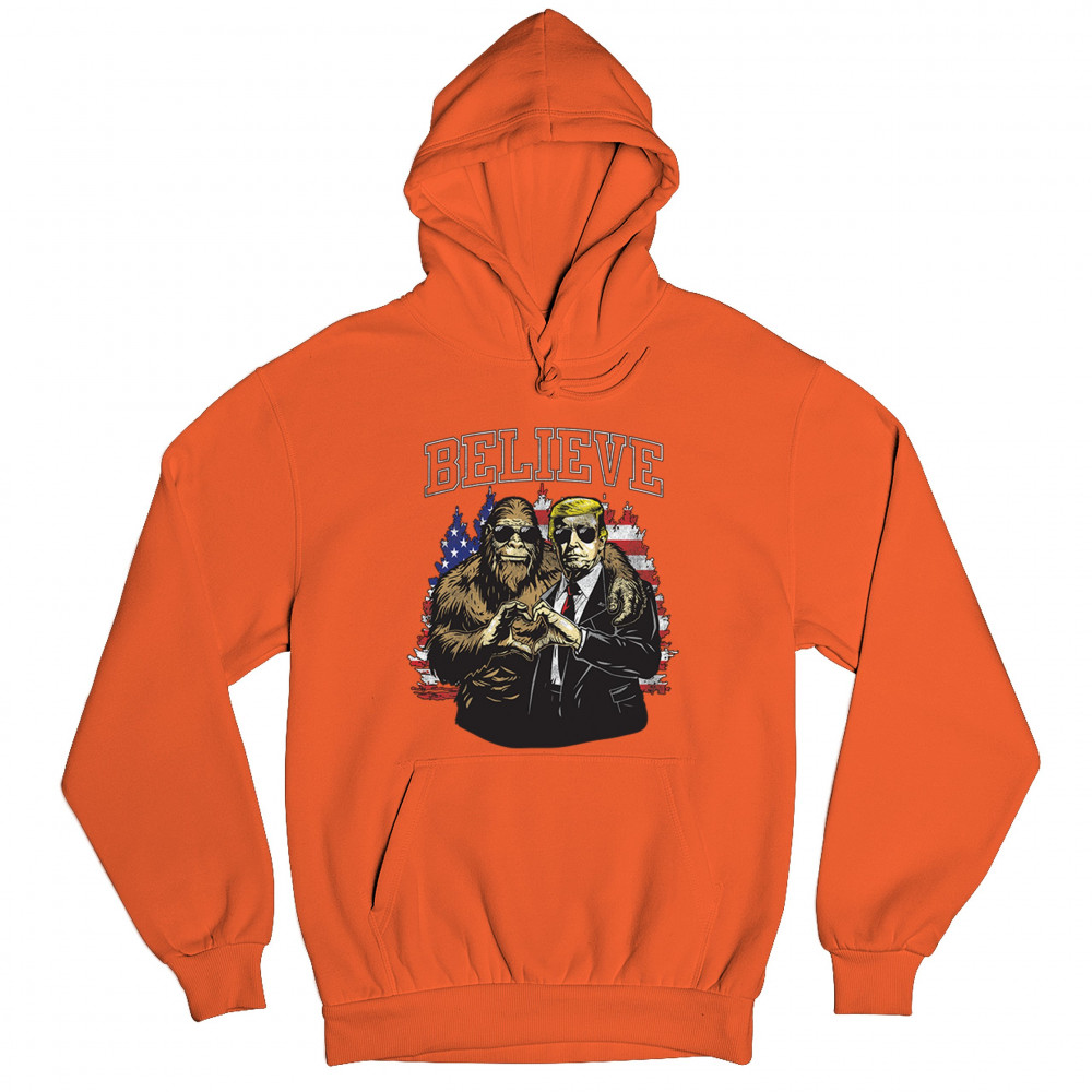 BIGFOOT ENDORSED TRUMP 24 sweatshirt president sasquatch believe maga hoodie orange