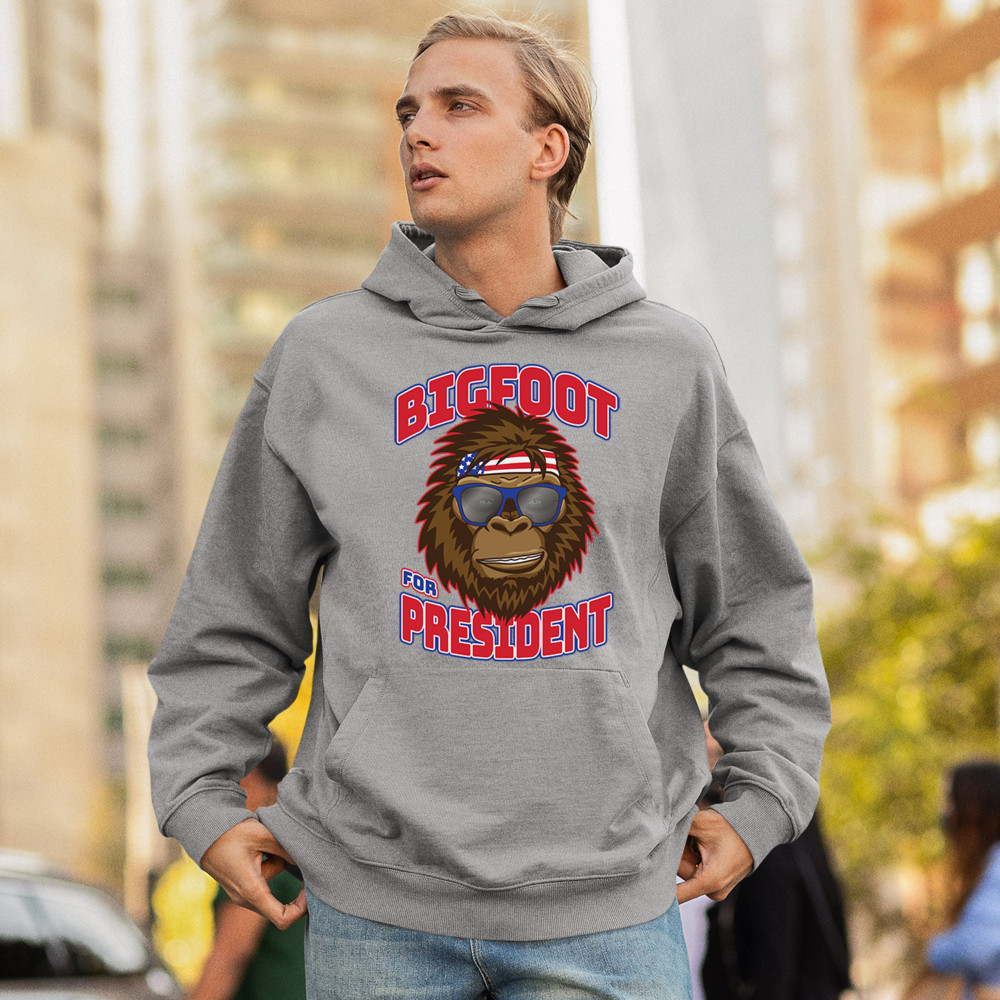 Show off your quirky style with the "Bigfoot for President" design. Perfect for casual wear and parties, featuring Bigfoot in sunglasses and a patriotic bandana.