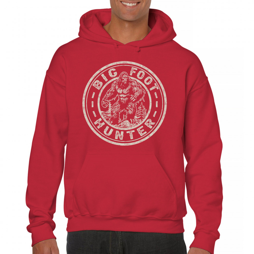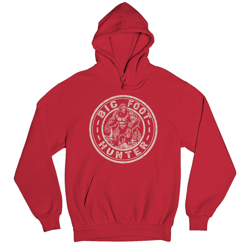 BIGFOOT HUNTER sweatshirt funny sasquatch joke believe outdoor camping hoodie red