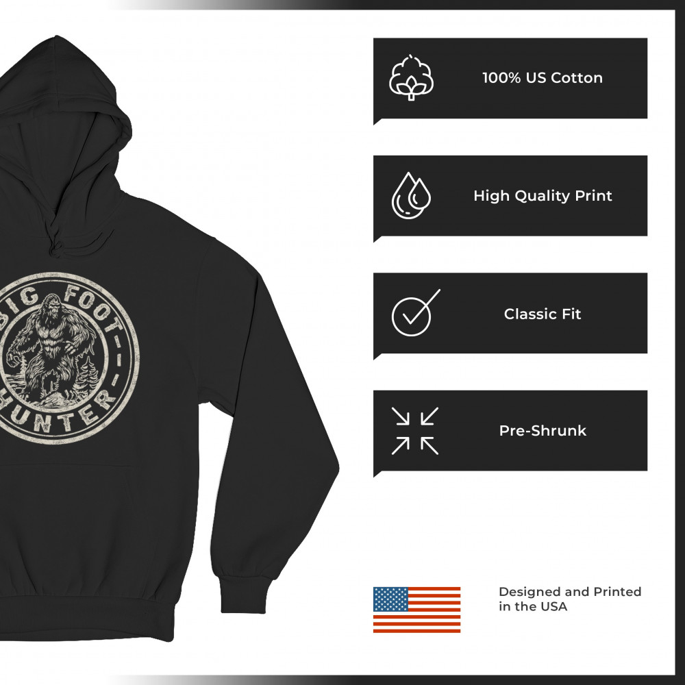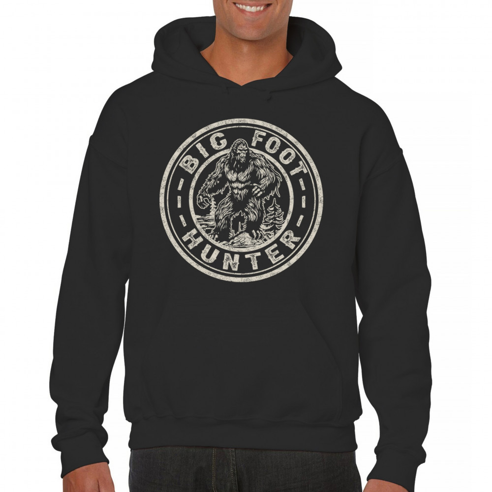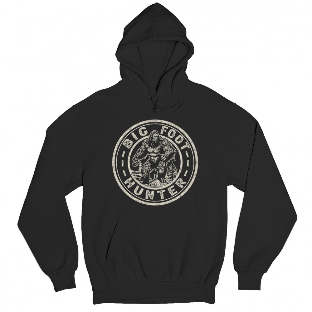 BIGFOOT HUNTER sweatshirt funny sasquatch joke believe outdoor camping hoodie black