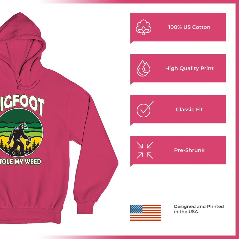 Humorous "Bigfoot Stole My Weed" design featuring Bigfoot and a cannabis leaf. Perfect for fans of Mary Jane, stoned humor, and a chill lifestyle.