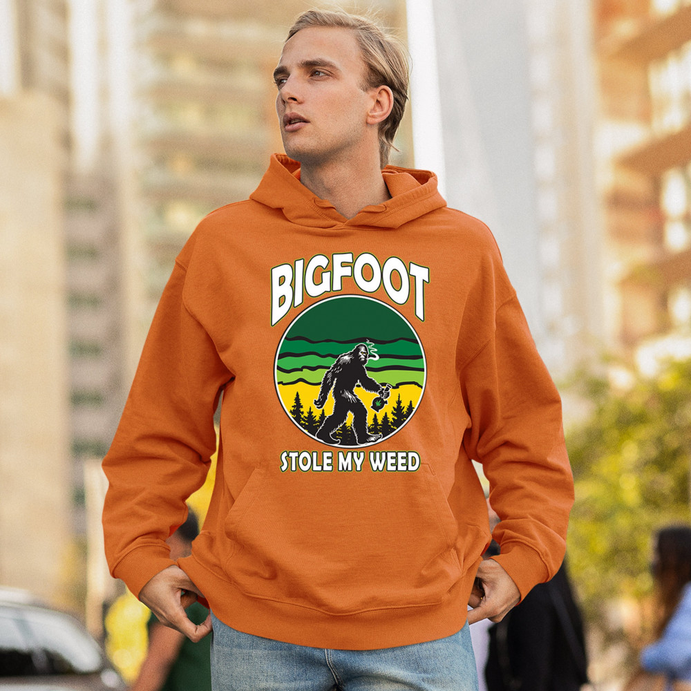 Humorous "Bigfoot Stole My Weed" design featuring Bigfoot and a cannabis leaf. Perfect for fans of Mary Jane, stoned humor, and a chill lifestyle.