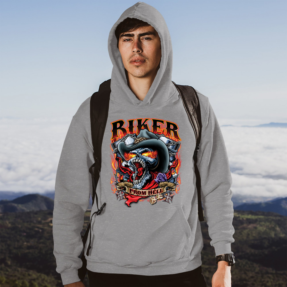 BIKER FROM HELL sweatshirt ride or die skeleton outlaw route 66 hoodie gray