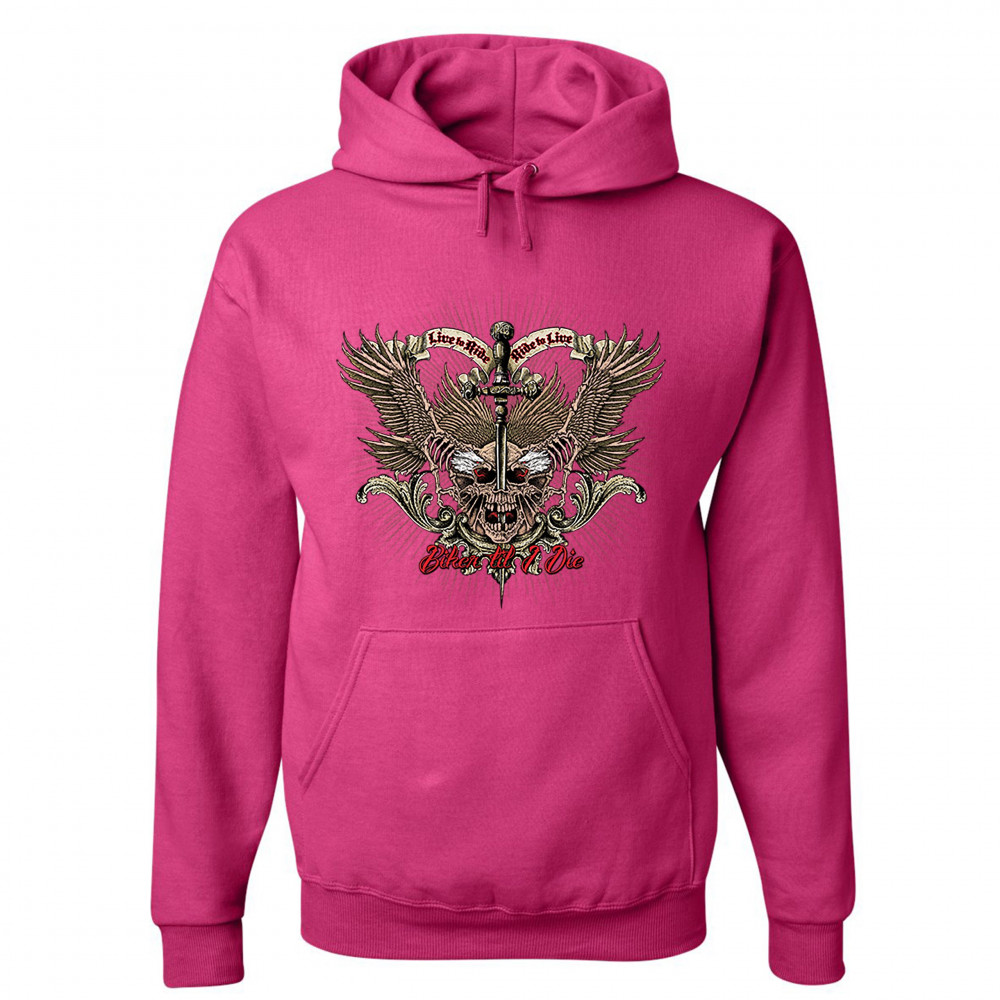 BIKER TIL I DIE sweatshirt live to ride biker forever skull face hoodie pink