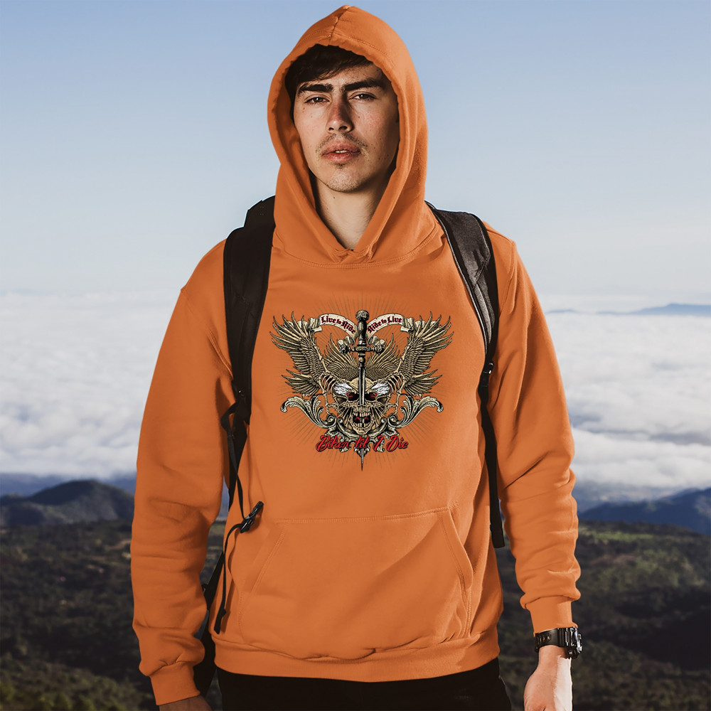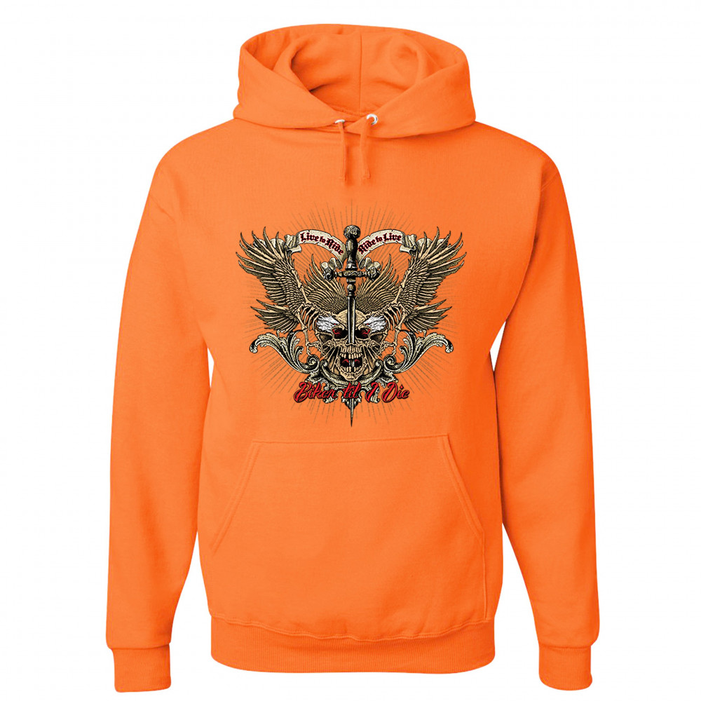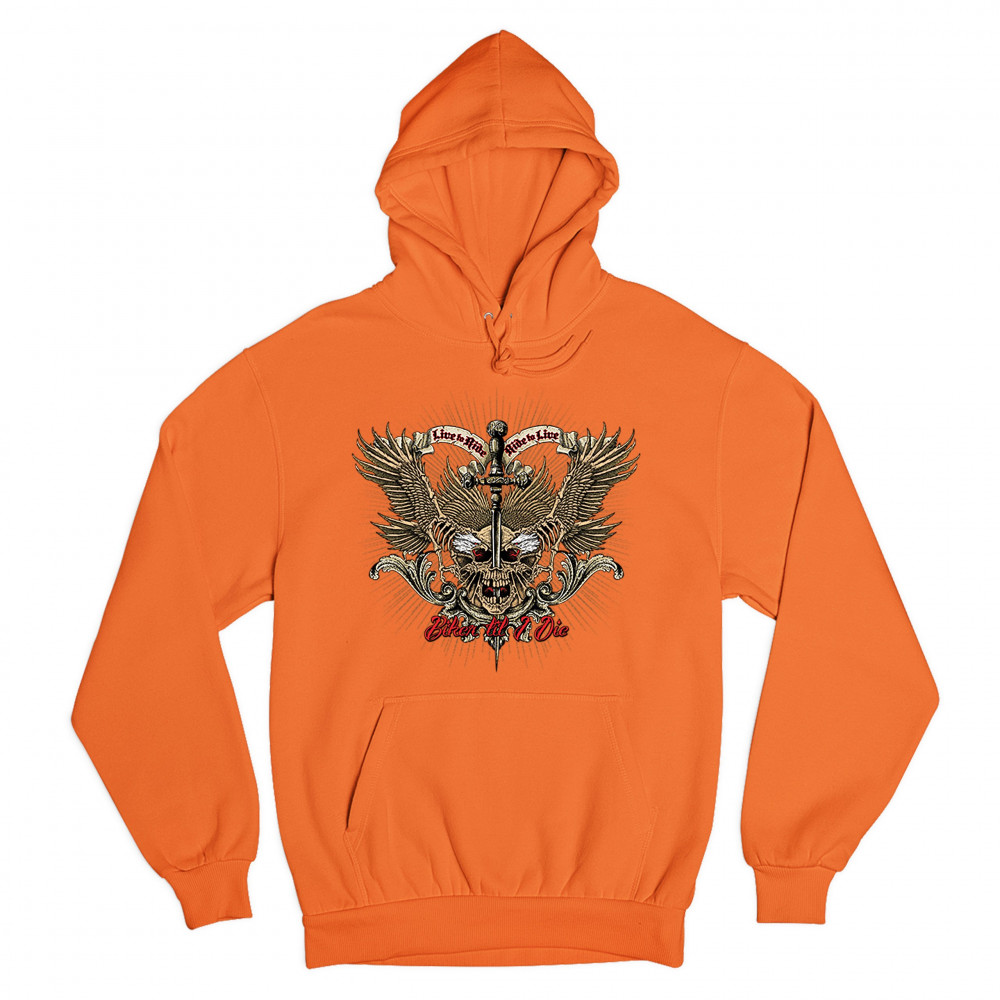 BIKER TIL I DIE sweatshirt live to ride biker forever skull face hoodie orange