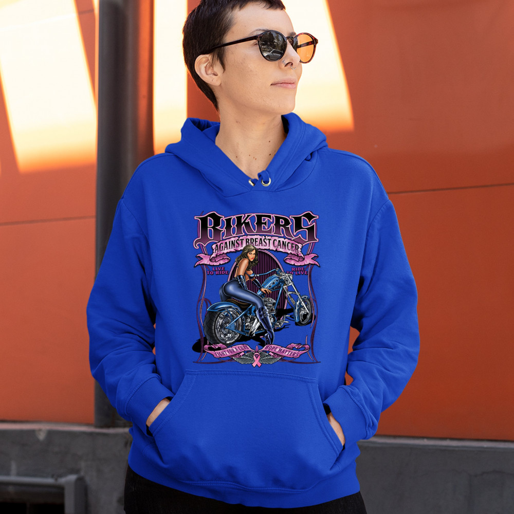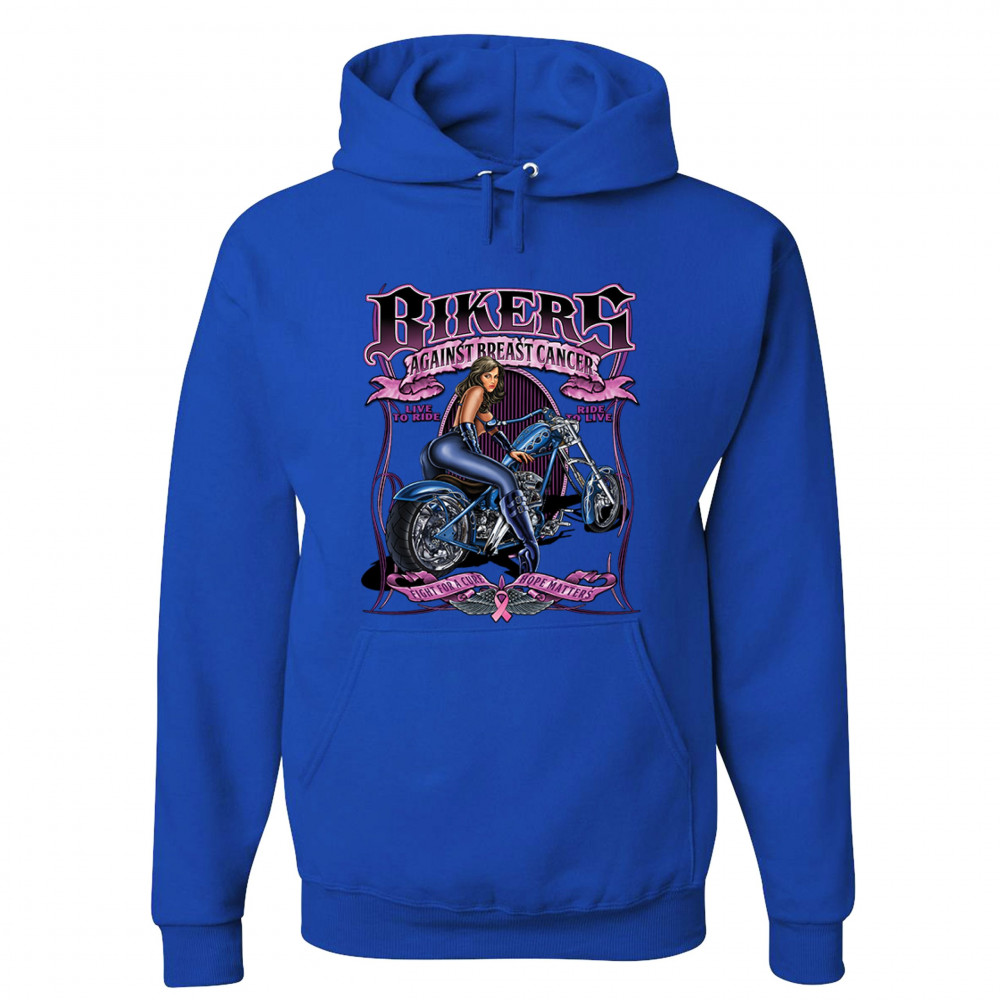 BIKERS AGAINST BREAST CANCER sweatshirt fight for a cure hope matters hoodie royal blue