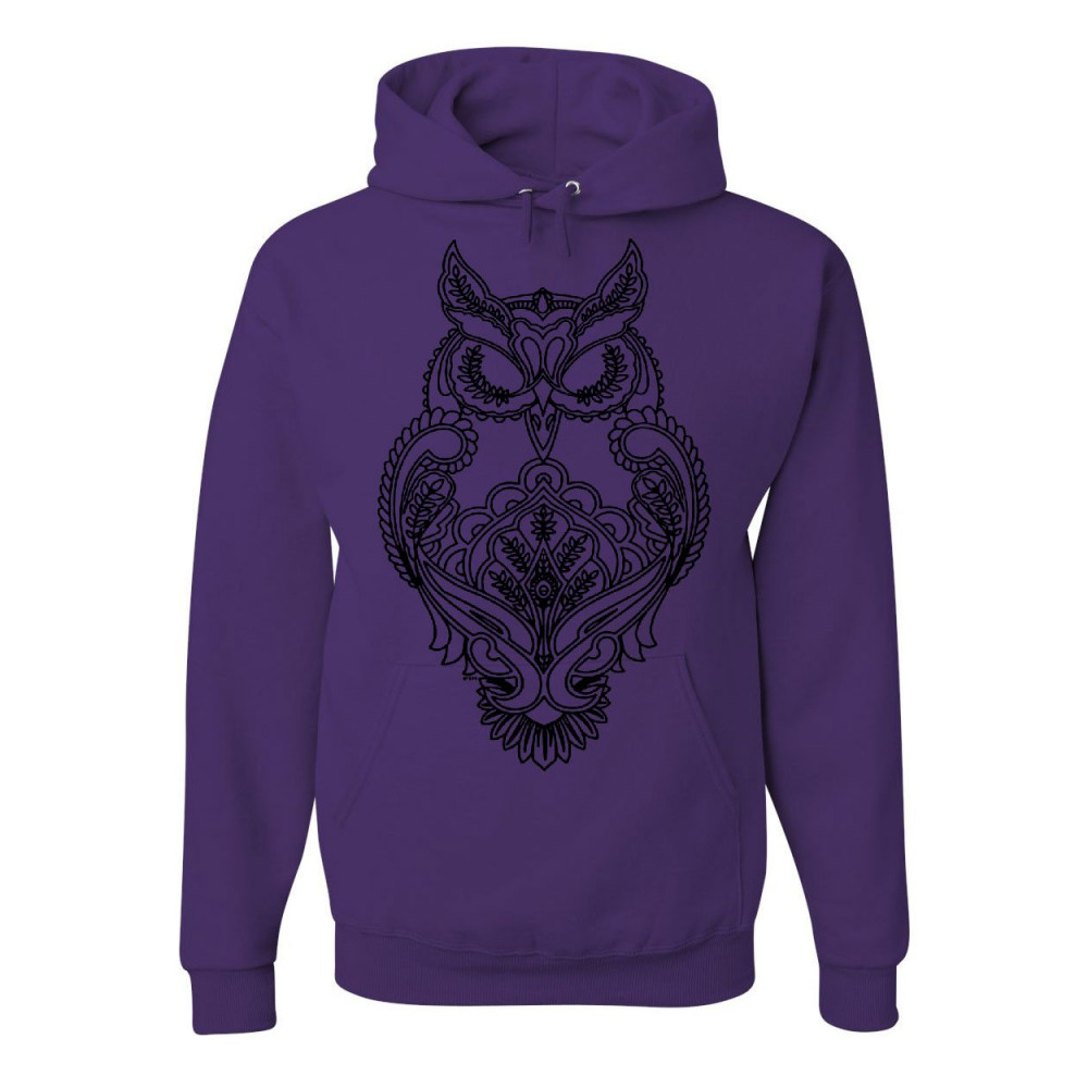 BLACK OWL HENNA STYLE hoodie wildlife nature knowledge wisdom sweatshirt purple
