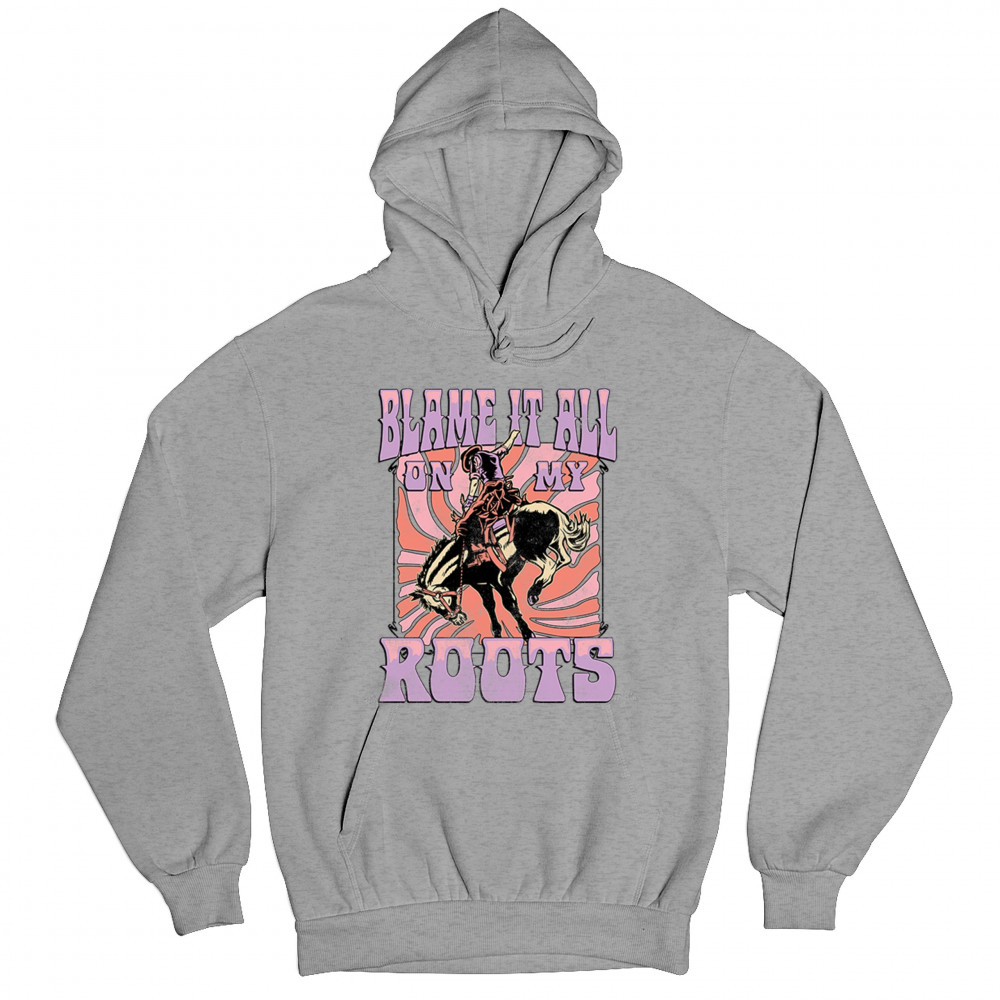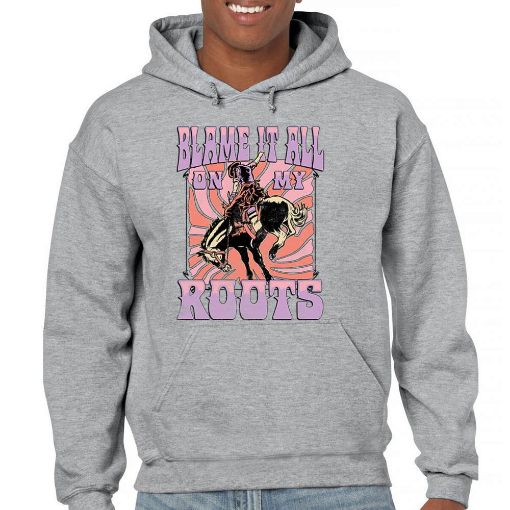 Blame It All On My Roots is vintage country style with rodeo spirit, perfect for small town life, barn dances, and wild country pride.