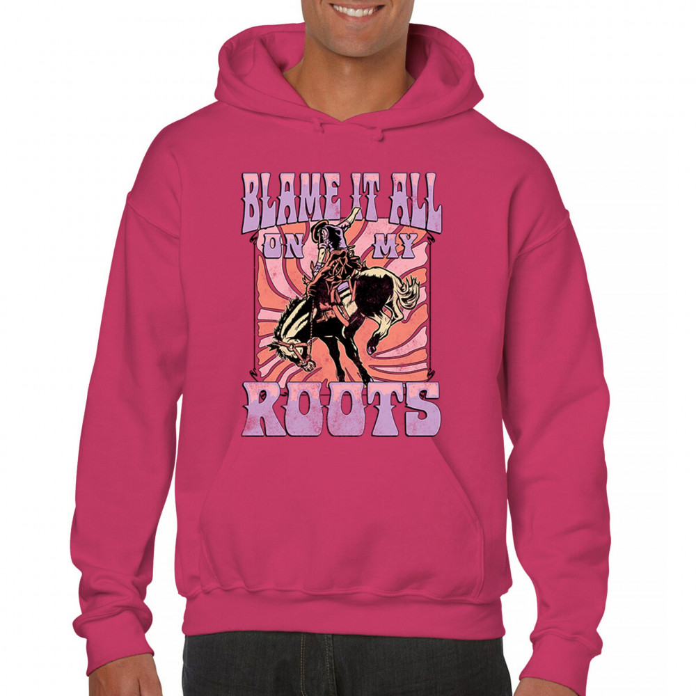 Blame It All On My Roots is vintage country style with rodeo spirit, perfect for small town life, barn dances, and wild country pride.