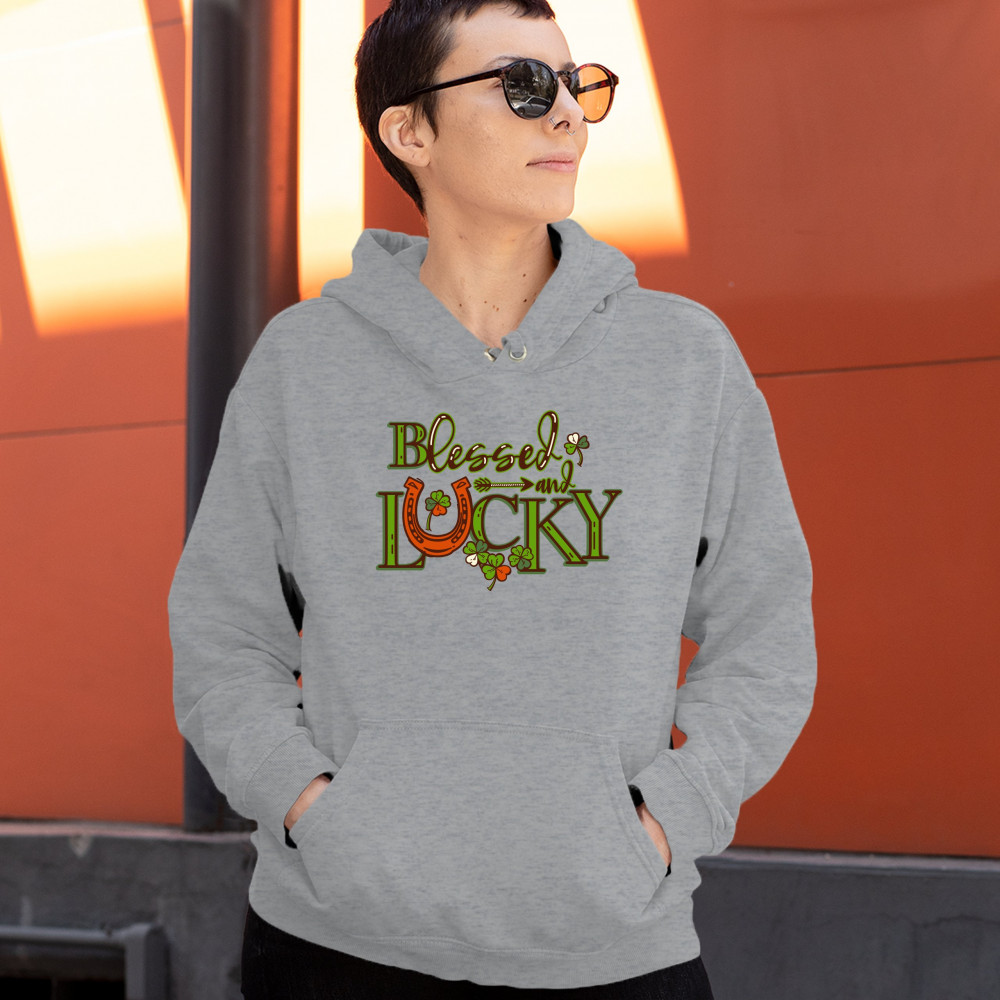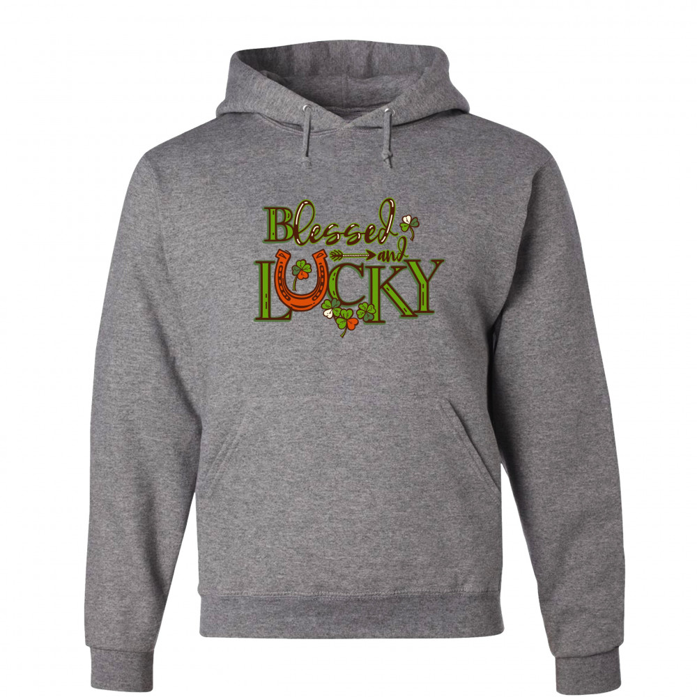 BLESSED AND LUCKY sweatshirt st. patrick's day clover irish malarkey hoodie gray